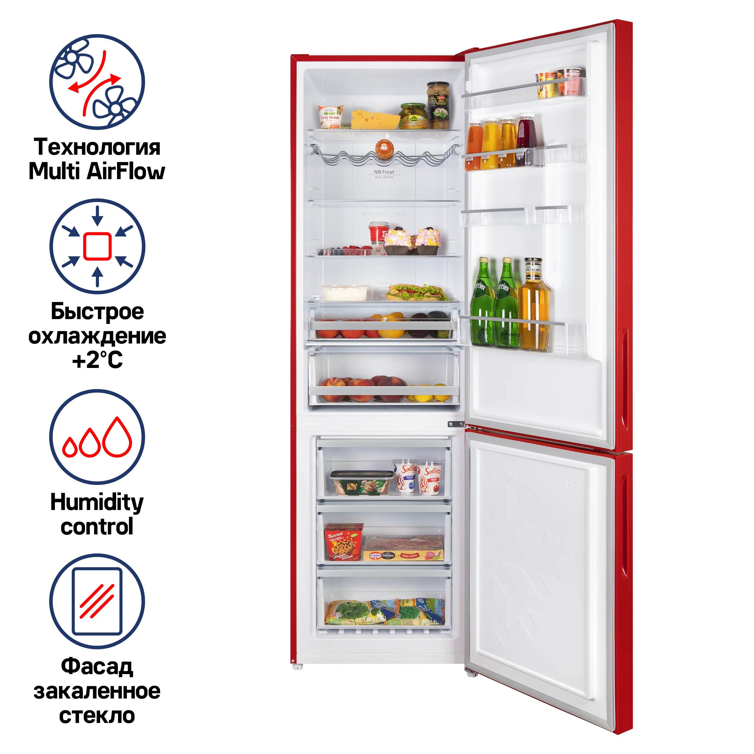 Дисплей, Звуковая индикация при открытых дверях, Наличие зоны свежести, Перенавешиваемые двери, Полка для бутылок, Система NO Frost