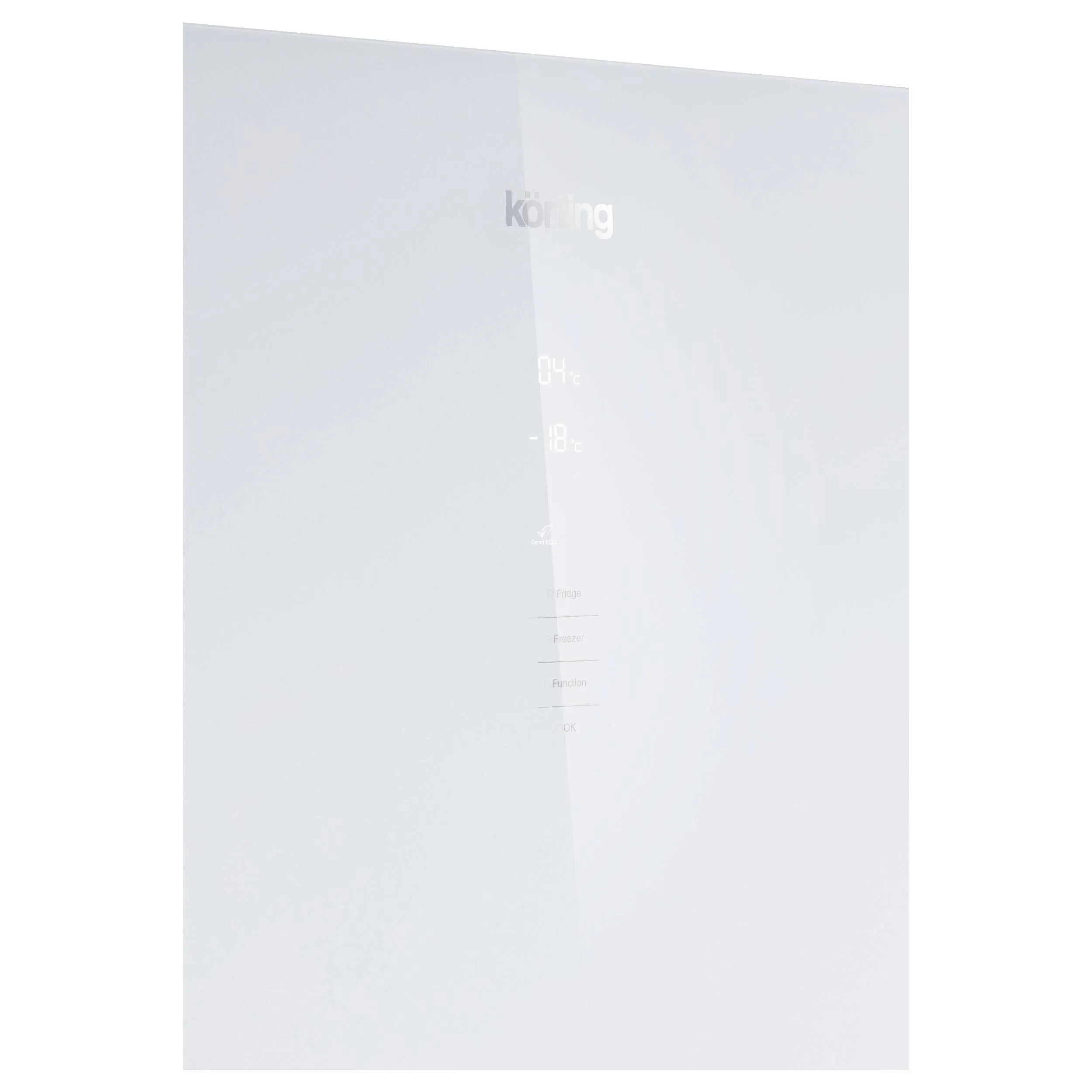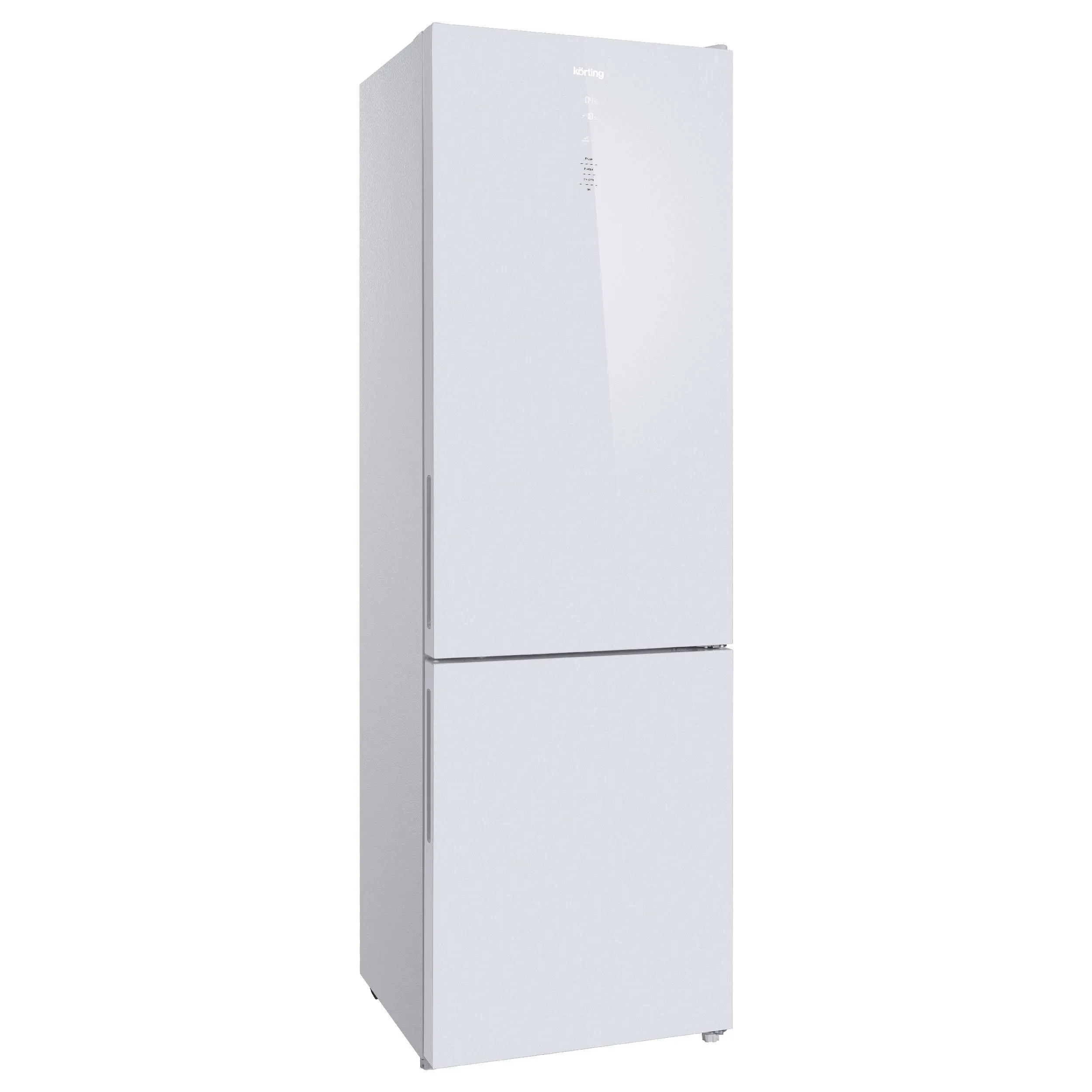 Ширина 60 см, А+, электронное сенсорное управление с внешним дисплеем , Full NO FROST, Dynamic Air Cooling, режимы "Супер охлаждение", «Супер заморозка»,  и "Отпуск", LED освещение камеры, скрытые  ручки,  металлическая полка для бутылок, ящик зоны свежести в холодильном отделении, ящик для овощей и фруктов  с регулятором влажности, полки из закаленного стекла, емкость для льда, объем холодильного отделения: 257 л, объем морозильного отделения: 94 л, перенавешиваемые двери, габариты (ВхШхГ): 2000x595x635 мм,  цвет - белое стекло