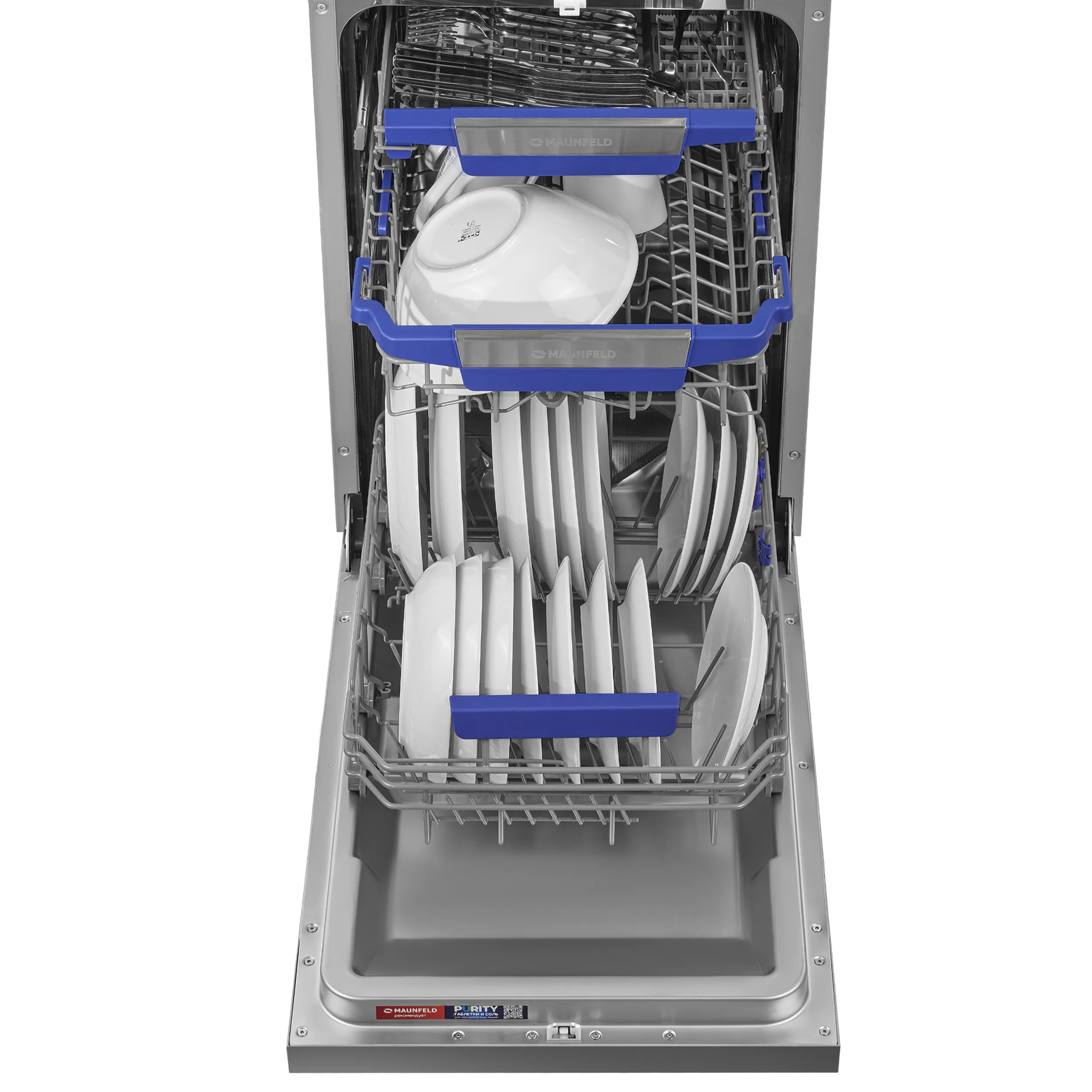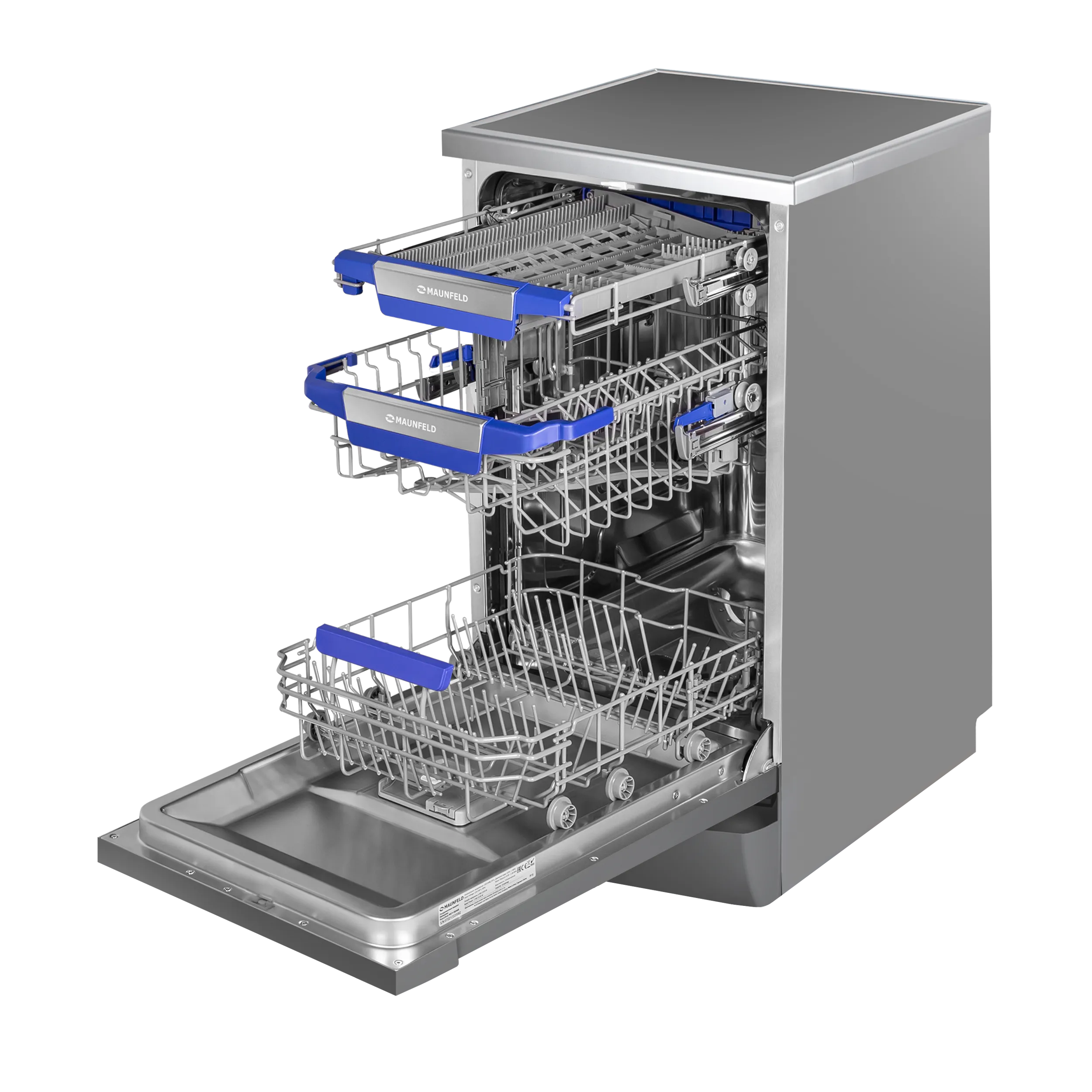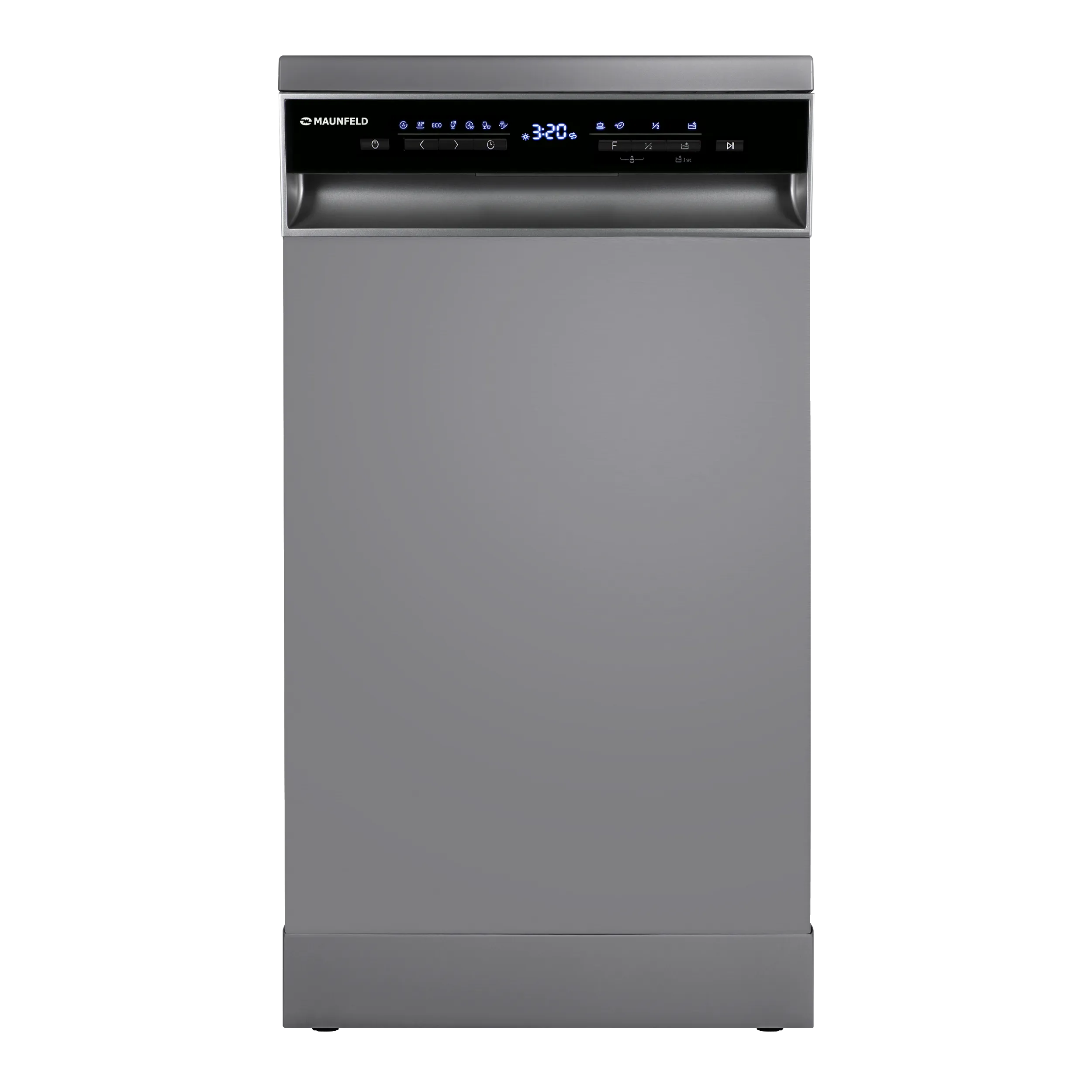 Узкая посудомоечная машина MAUNFELD MWF45331S с аквастопом. На большом и широком светодиодном дисплее можно с комфортом просматривать всю информацию о посудомоечной машине.