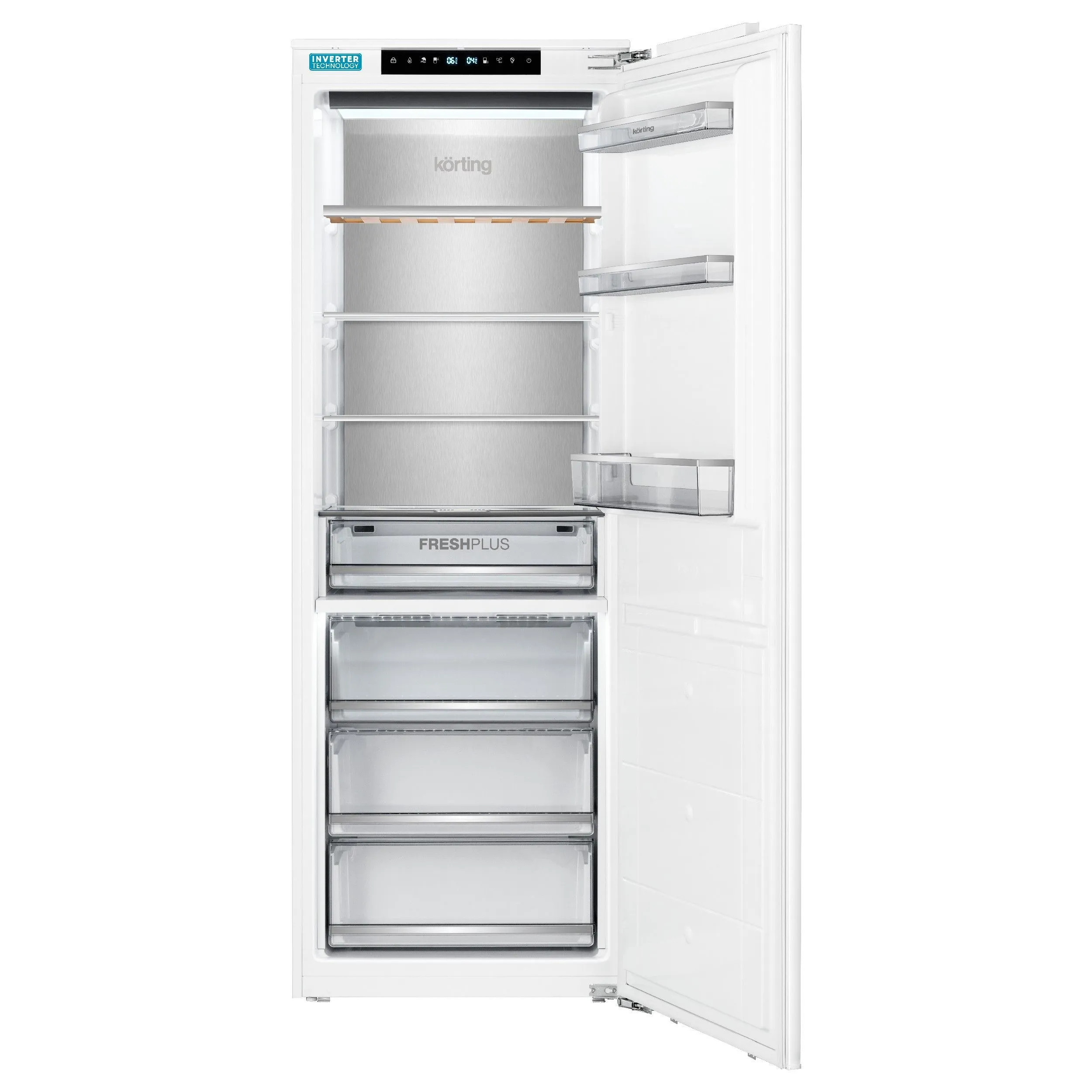 Встраиваемая холодильная камера, Инверторный компрессор, Система охлаждения No Frost, Электронное управление, Задняя стенка холодильного отделения Cold Metal, Ящик зоны свежести с механической регулировкой влажности, Раздельная регулировка температуры для верхней и нижней зон холодильника, Режим «Супер охлаждение», Режим “Отпуск”, LED подсветка по всей площади верхней части камеры, Ящики для фруктов и овощей,  Полки из закаленного стекла, Деревянная полка для  вина,  Класс энергопотребления: А+, Жесткое крепление двери, Перенавешиваемая дверь, Объем холодильного отделения: 330 л, Габаритные размеры (в/ш/г), 1937х690х550 мм