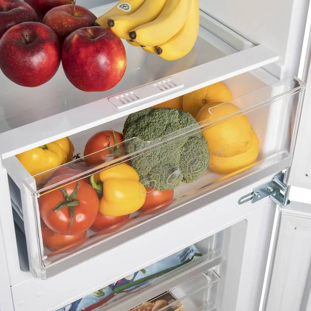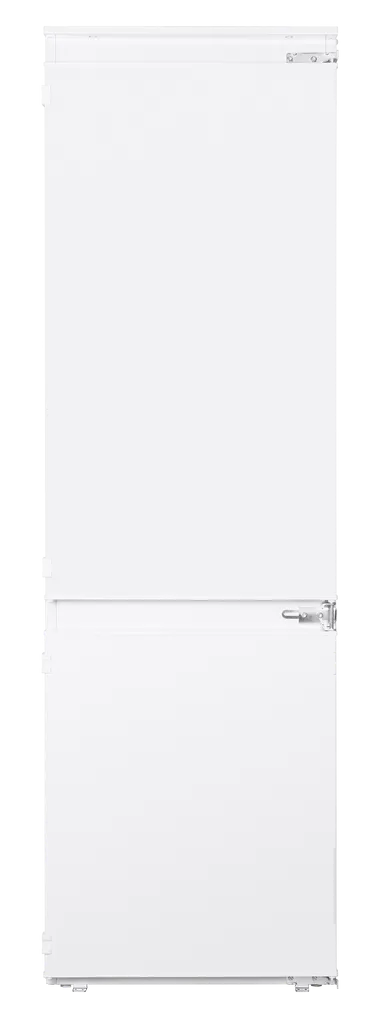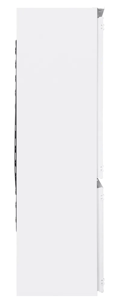 Современный встраиваемый двухкамерный холодильник с перенавешиваемой дверью.