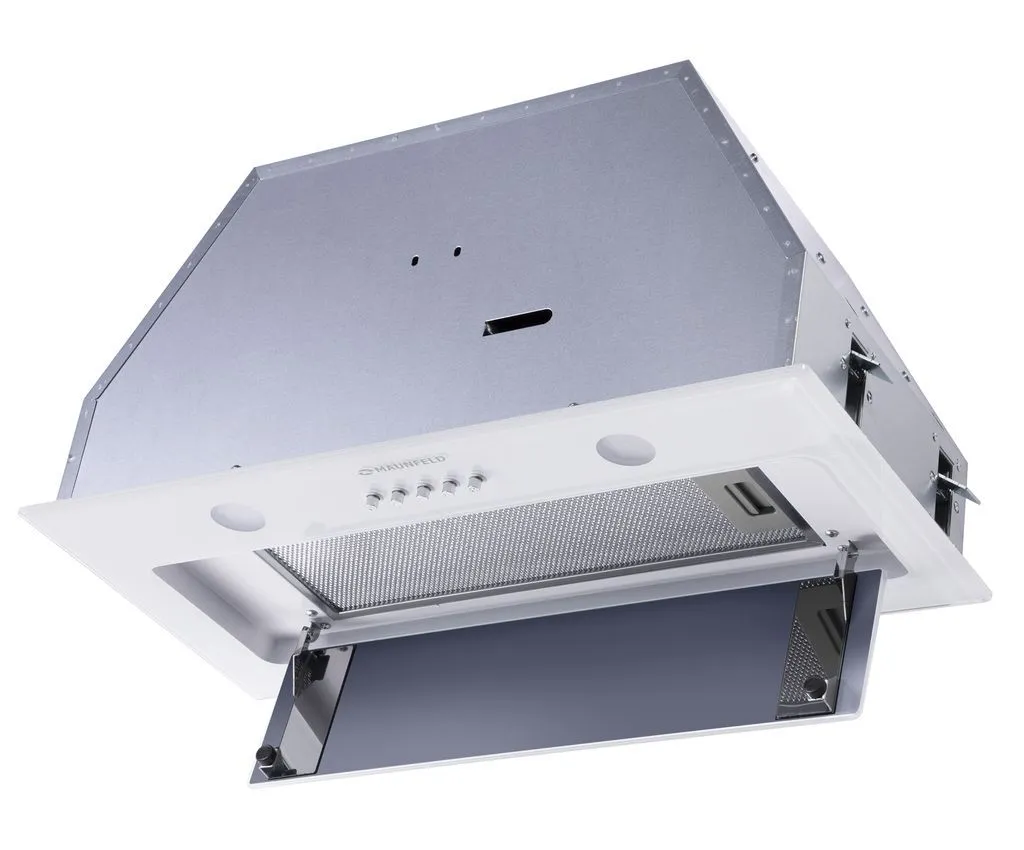 Стильная встраиваемая кухонная вытяжка шириной 60 см идеально подходит для большой кухни. Модель монтируется в навесной шкаф над поверхностью плиты. Может использоваться для отвода воздуха из помещения при подключении к системе домовой вентиляции или очищать воздух с помощью сменного угольного фильтра.Фронтальная панель выполнена из глянцевого закаленного стекла белого цвета. За откидной панелью находится многослойный жироулавливающий фильтр, который легко вынимается и полностью разбирается, что сильно упрощает чистку. Загрязненный воздух втягивается по всему периметру панели.