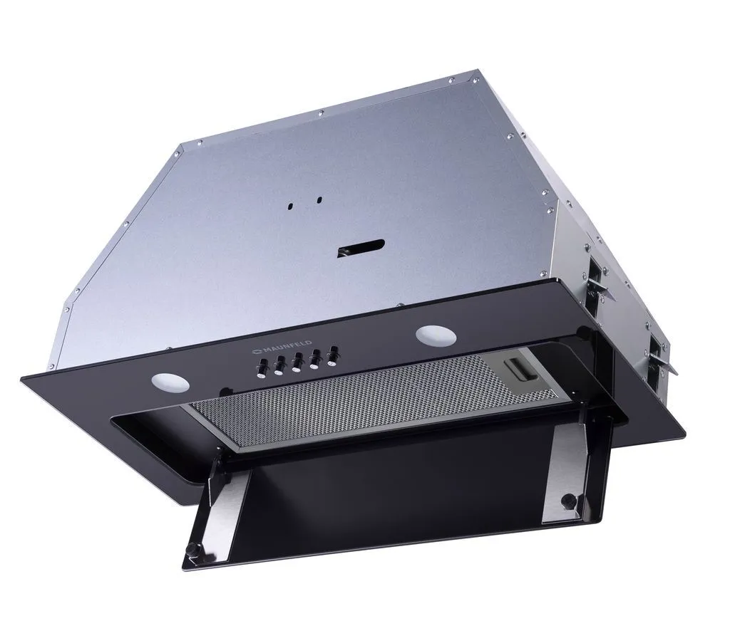 Стильная встраиваемая кухонная вытяжка шириной 60 см идеально подходит для большой кухни. Модель монтируется в навесной шкаф над поверхностью плиты. Может использоваться для отвода воздуха из помещения при подключении к системе домовой вентиляции или очищать воздух с помощью сменного угольного фильтра.Фронтальная панель выполнена из глянцевого закаленного стекла черного цвета. За откидной панелью находится многослойный жироулавливающий фильтр, который легко вынимается и полностью разбирается, что сильно упрощает чистку. Загрязненный воздух втягивается по всему периметру панели.