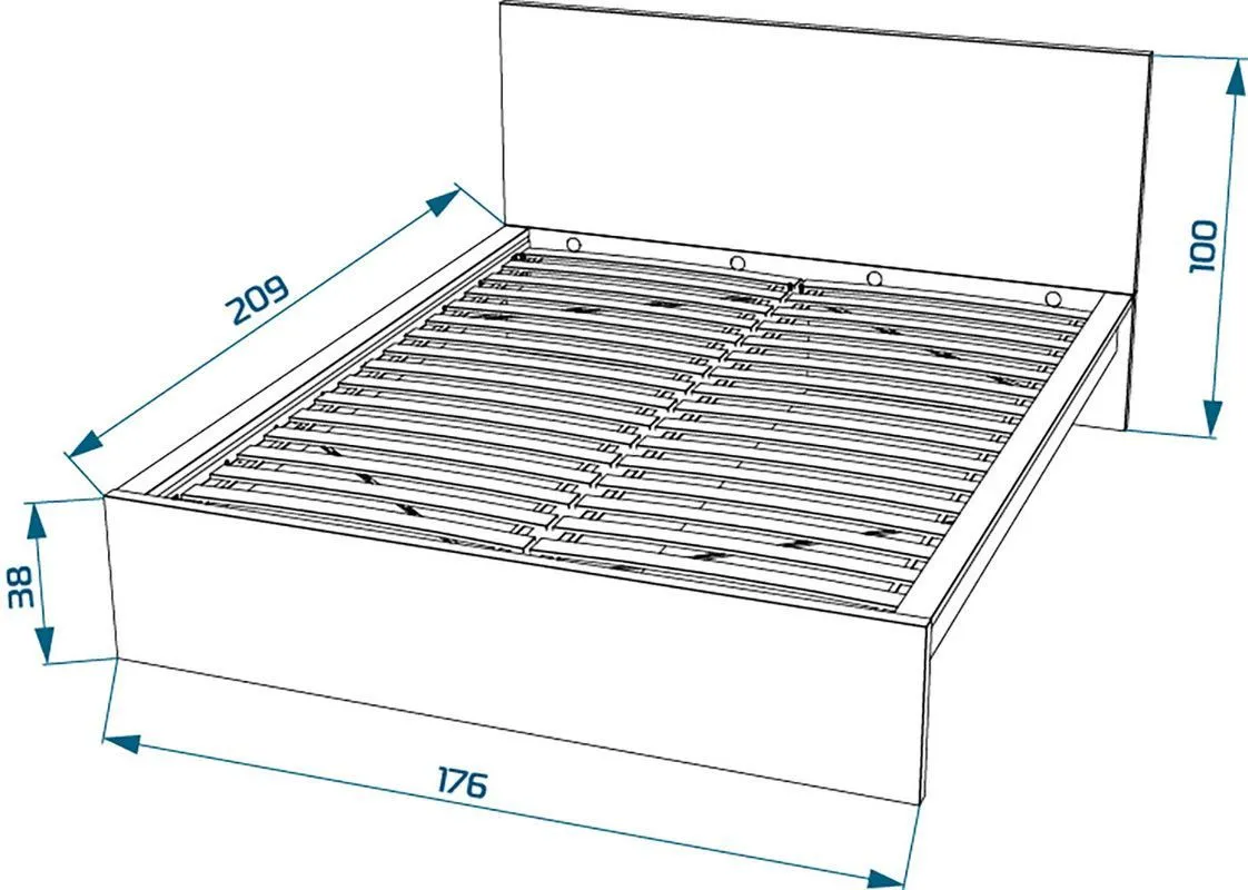 2.08.04.060.16 САГА кровать двойная 140х200 темно-бирюзовая/ясень