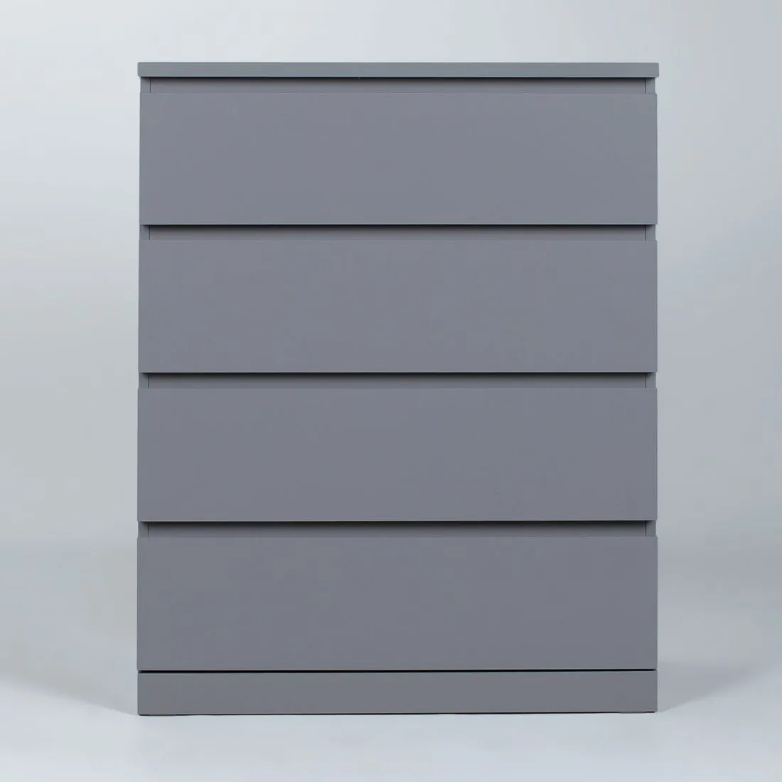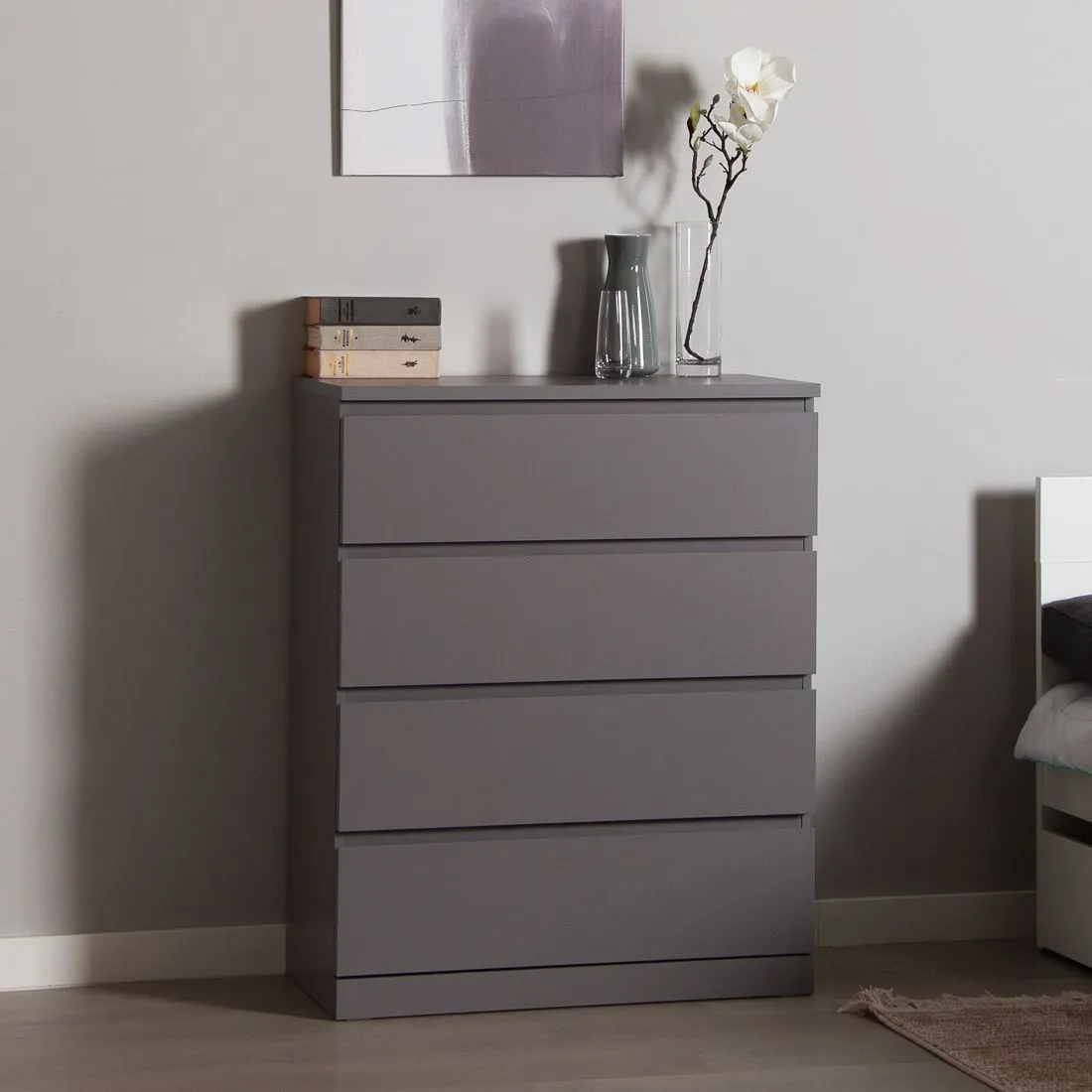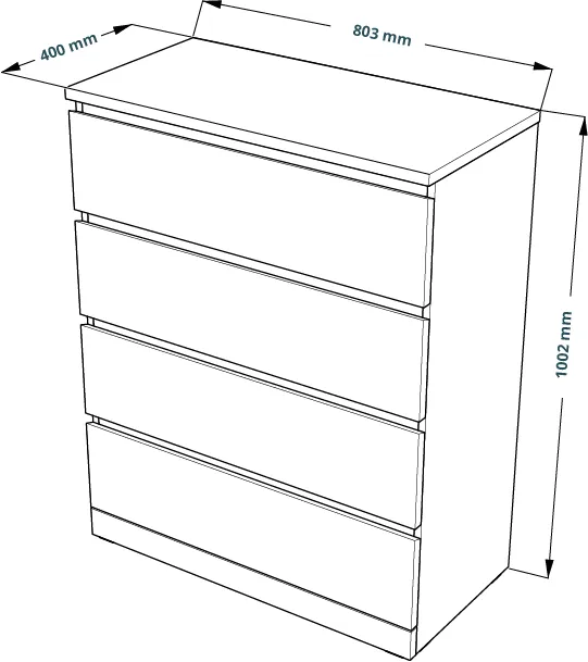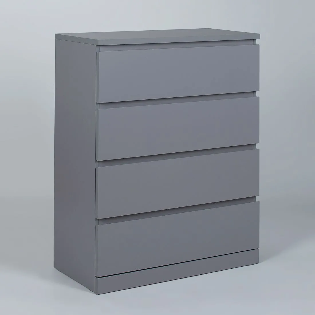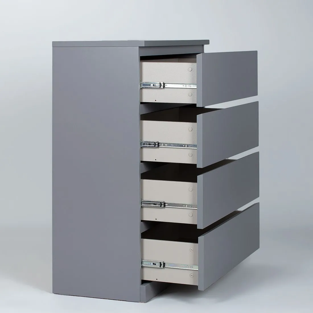 Комод Варма 4, 803х400х1002, цвет Серый. Стильный удобный комод с четырьмя выдвижными ящиками. Прекрасно дополнит интерьер и теплую уютную домашнюю атмосферу. Хорошие параметры функциональности (качественные телескопические направляющие, вместительность, удобство использования). Поверхность окрашена экологически безопасными материалами, продолжительное время сохраняет внешний вид. Отлично сочетается в интерьере со стеллажами и полками Фора, журнальными столиками и ТВ-тумбами Энкель, стеллажами Варма. Доступен к заказу не только в сером цвете, но и в белом, и с покрытием натуральным шпоном (беленый дуб, черный). Преимущества: эстетичный внешний вид; вместительность; простая сборка; экологичность и высокое качество окраски (экологически безопасные материалы); высококачественные телескопические направляющие (мягкое открывание). Крепежные элементы (дюбель-гвозди) приобретаются Покупателем дополнительно в зависимости от материала стены. Гарантийный срок для жилых и общественных помещений 24 месяца.
