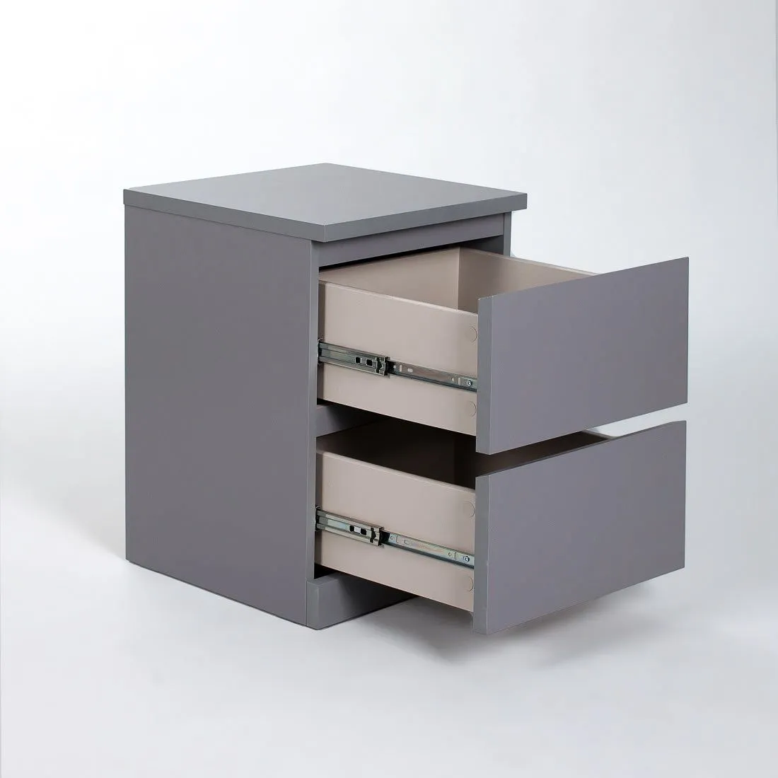 Комод Варма 2, 403х400х548, цвет Серый. Стильный удобный комод с 2 выдвижными ящиками. Прекрасно дополнит интерьер и теплую уютную домашнюю атмосферу. Хорошие параметры функциональности (качественные телескопические направляющие, вместительность, удобство использования). Поверхность окрашена экологически безопасными материалами, продолжительное время сохраняет внешний вид. Отлично сочетается в интерьере со стеллажами и полками Фора, журнальными столиками и ТВ-тумбами Энкель, стеллажами Варма. Доступен к заказу не только в сером цвете, но и в белом, а также с покрытием натуральным шпоном (беленый дуб, черный). Преимущества: эстетичный внешний вид; вместительность; простая сборка; экологичность и высокое качество окраски (экологически безопасные материалы); высококачественные телескопические направляющие (мягкое открывание). Крепежные элементы (дюбель-гвозди) приобретаются Покупателем дополнительно в зависимости от материала стены. Гарантийный срок для жилых и общественных помещений 24 месяца.