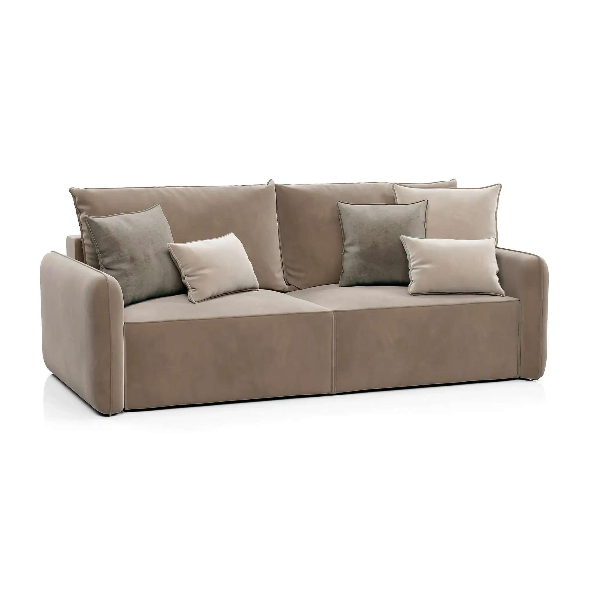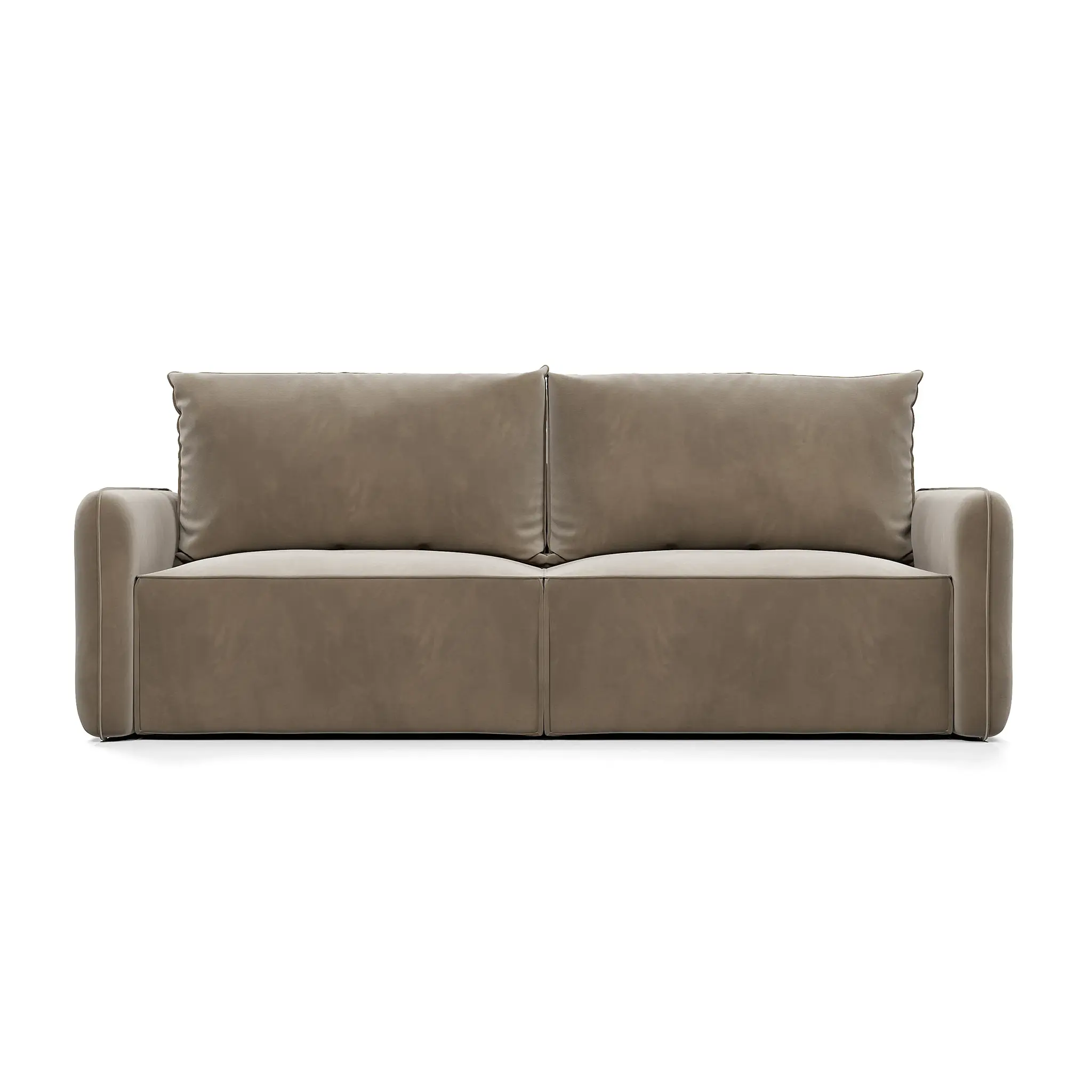 Обивка дивана - мягкий бархатистый премиальный велюр. Тонкая динамика узора обивки создаёт в пространстве ощущение лёгкости и движения.
