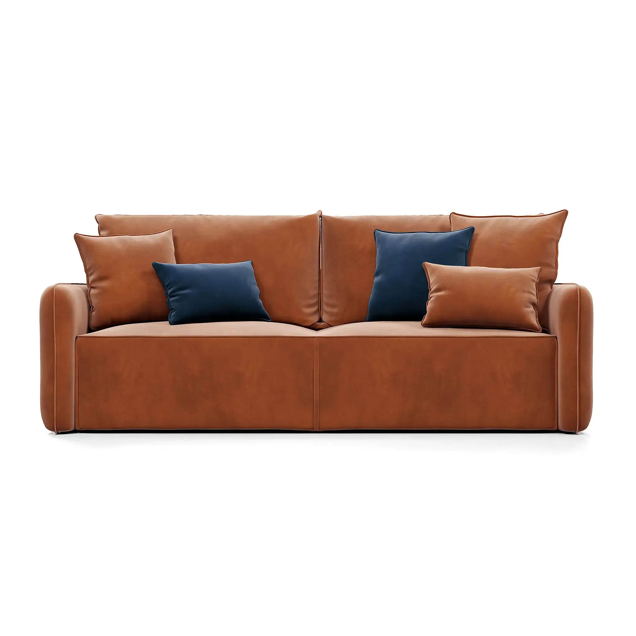 Обивка дивана - мягкий бархатистый премиальный велюр. Тонкая динамика узора обивки создаёт в пространстве ощущение лёгкости и движения.