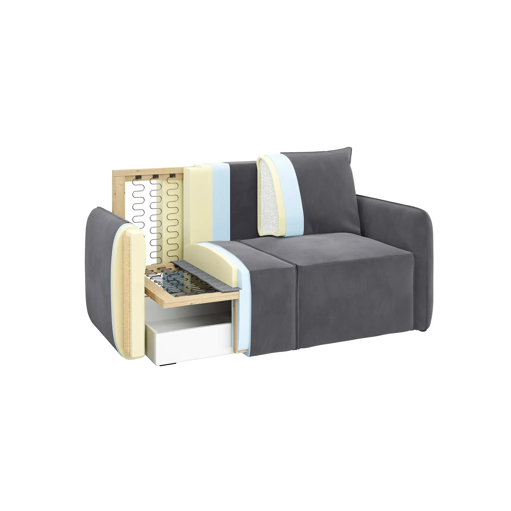 Гарантия 18 месяцев: мы уверены в качестве своей продукции.Обивка велюр Diagonal от Chistetika: технология Waterproof делает ткань устойчивой к влаге и, благодаря этому, обивка долговечна и проста в уходе.Место для хранения: под сиденьем расположен бельевой короб для постельного белья.Компактный размер: ширина дивана всего 163 см!