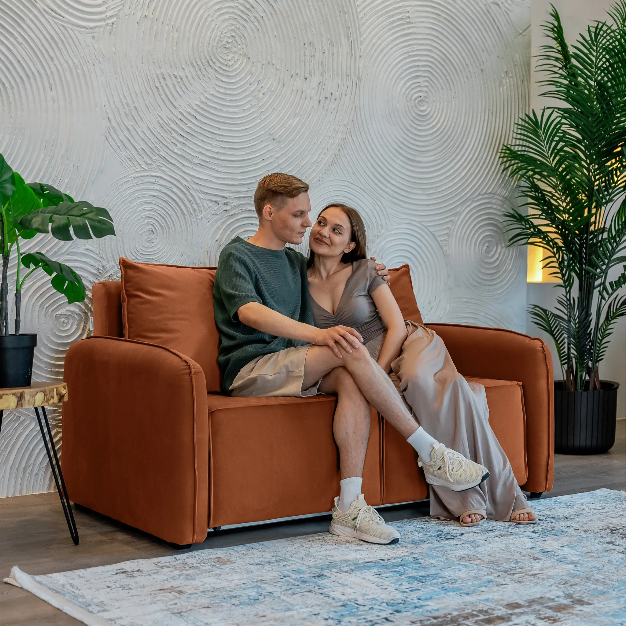КОРСО Диван прямой с банкеткой, терракотовый