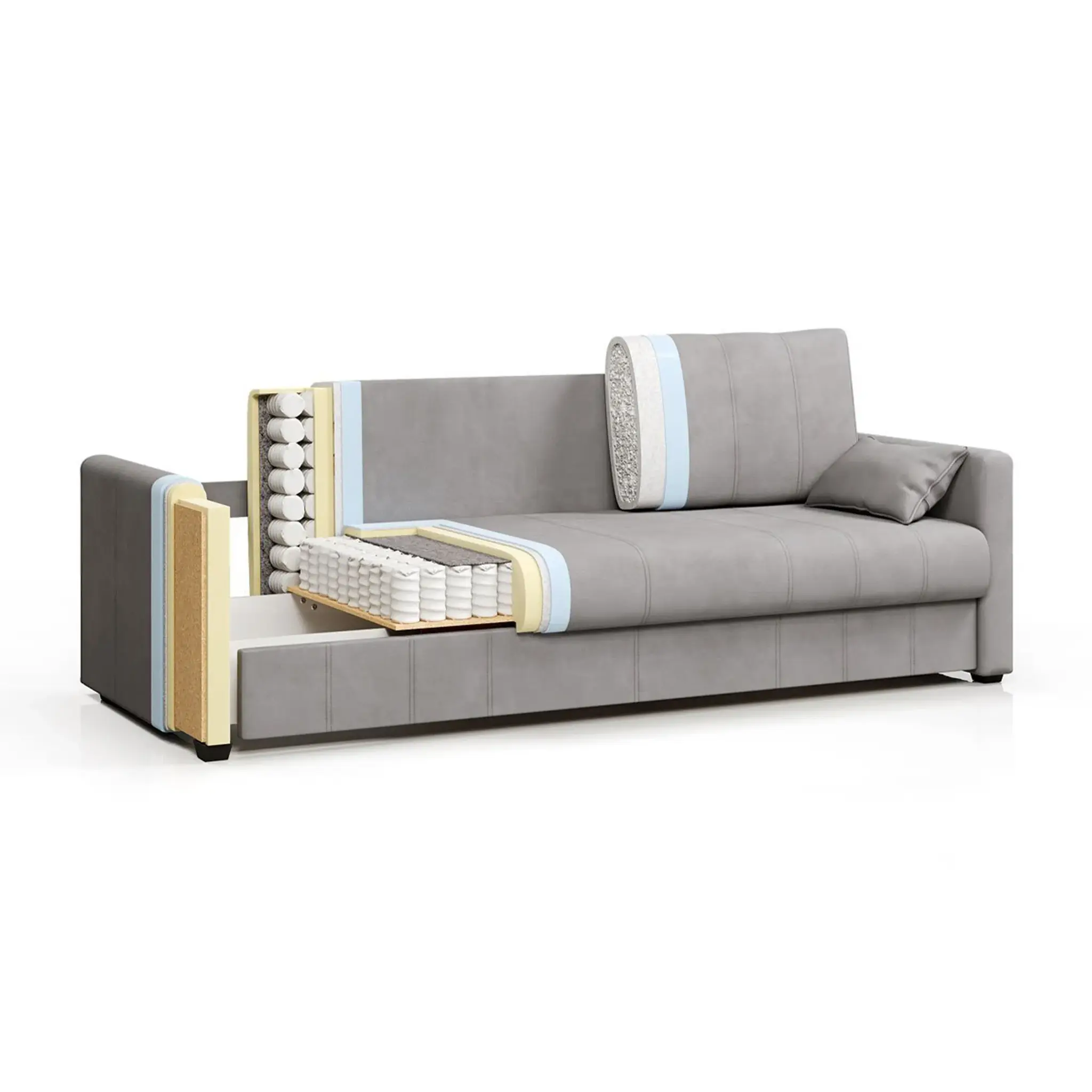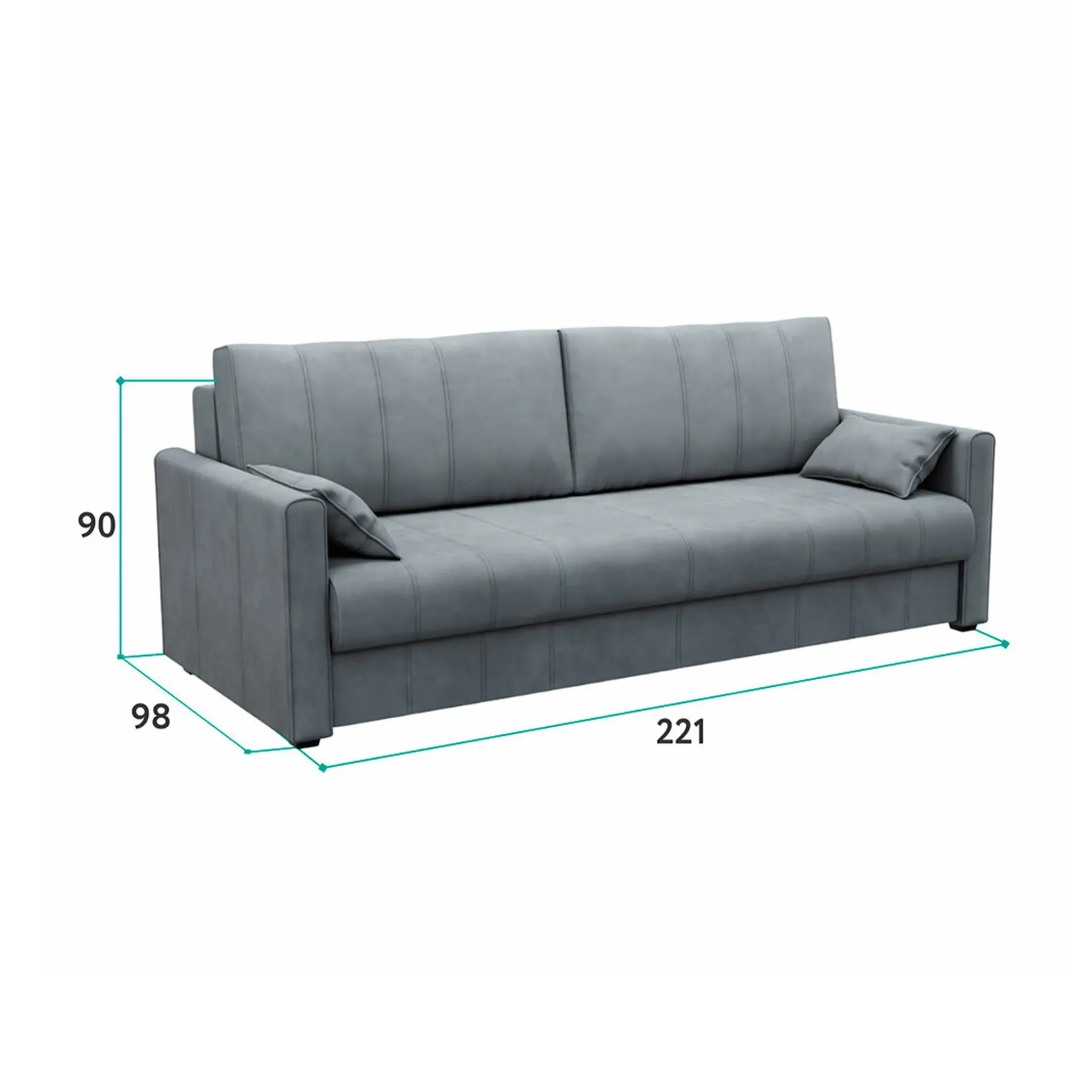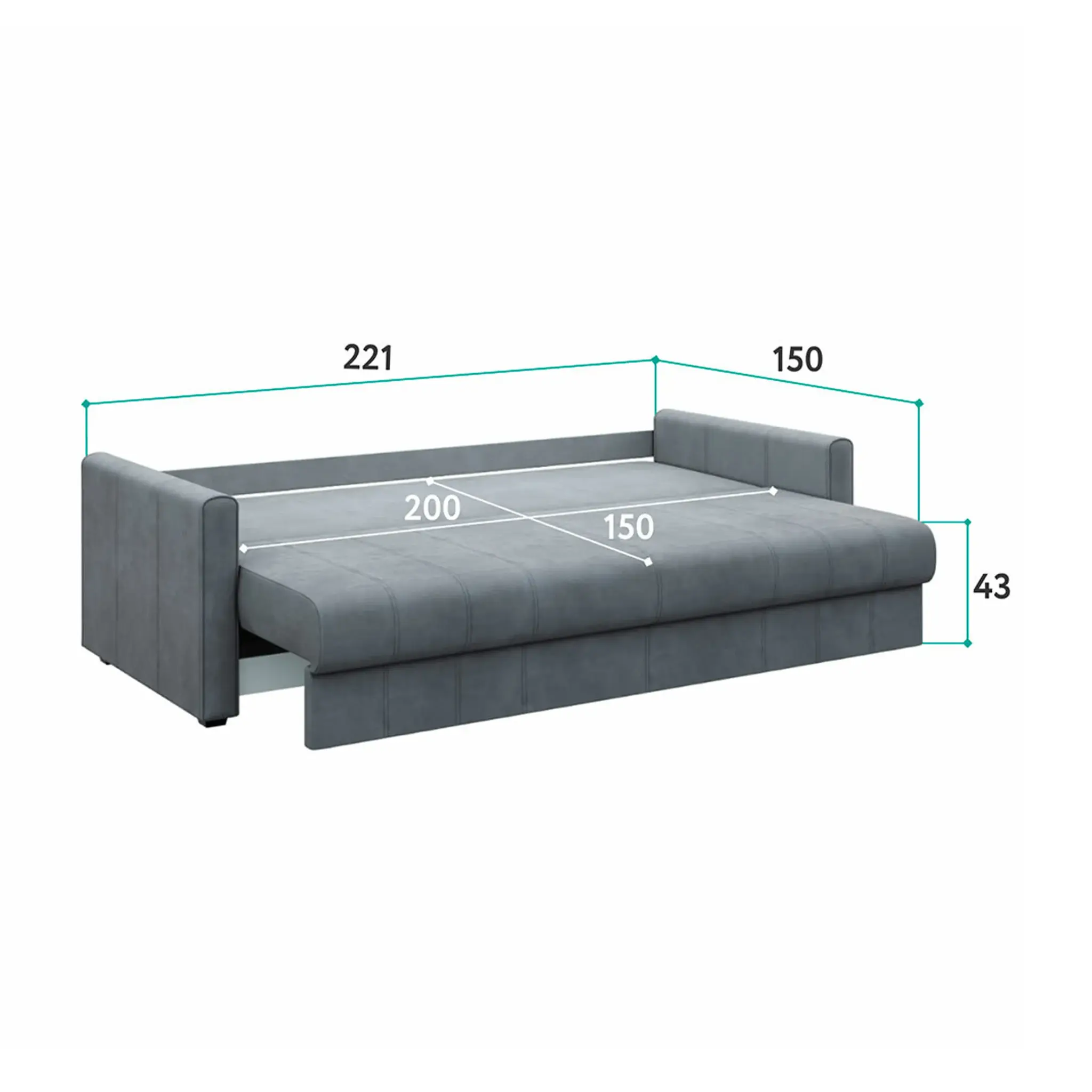 Универсальный скандинавский стиль коллекции Римини идеально вписывается в современные интерьеры. Легкий прямой силуэт и актуальные расцветки неизменно смотреться дорого и красиво. Почему вам понравится диван «Римини»: Гарантия 18 месяцев: мы уверены в качестве своей продукции.Независимый пружинный блок обеспечивает здоровый сон и комфортный отдых.Обивка велюр Velutto: мягкий бархатистый велюр со слегка матовой фактурой с эффектом легкой чистки.Место для хранения: под сиденьем расположен вместительный короб для одеял и подушек. Диваны коллекции Римини легко можно представить в гостиной или детской, в просторном доме или квартире-студии. Характеристики:  Габариты (см): 221х98х90 Спальное место (см): 200х150 Высота посадочного места (см): 43 Короб для белья: Есть Каркас: Фанера / ДСП / ЛДСП / Брусок хвойных пород дерева Наполнитель: ППУ / Независимый пружинный блок / Синтепон Нагрузка на спальное место (кг): 220 кг Вес (кг): 115 кгФабрика D1 является российским производителем мебели. Мы осуществляем полный производственный цикл всего представленного ассортимента. Все используемые материалы и комплектующие сертифицированы и соответствуют САНПиН. На всю нашу продукцию мы даём гарантию 18 месяцев.