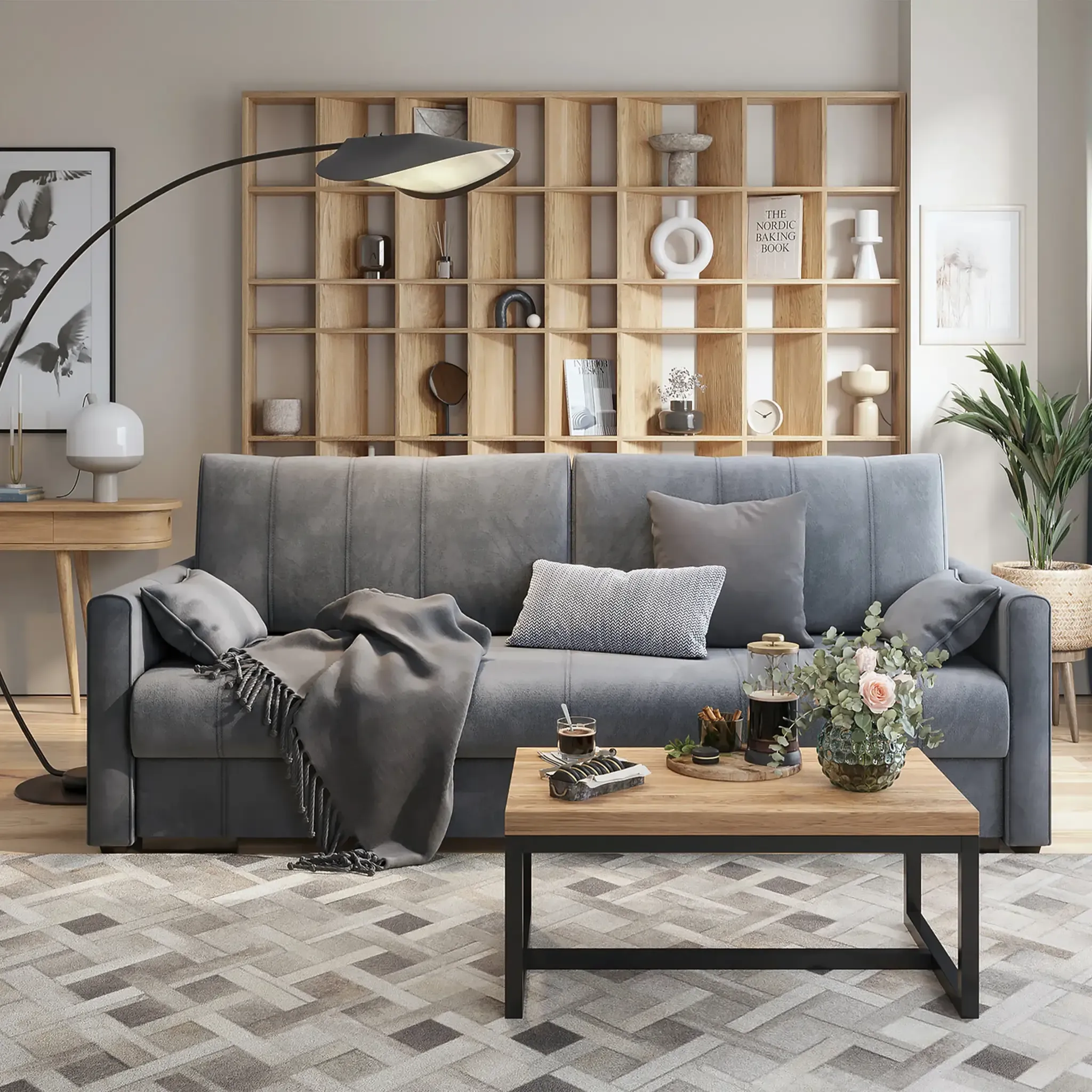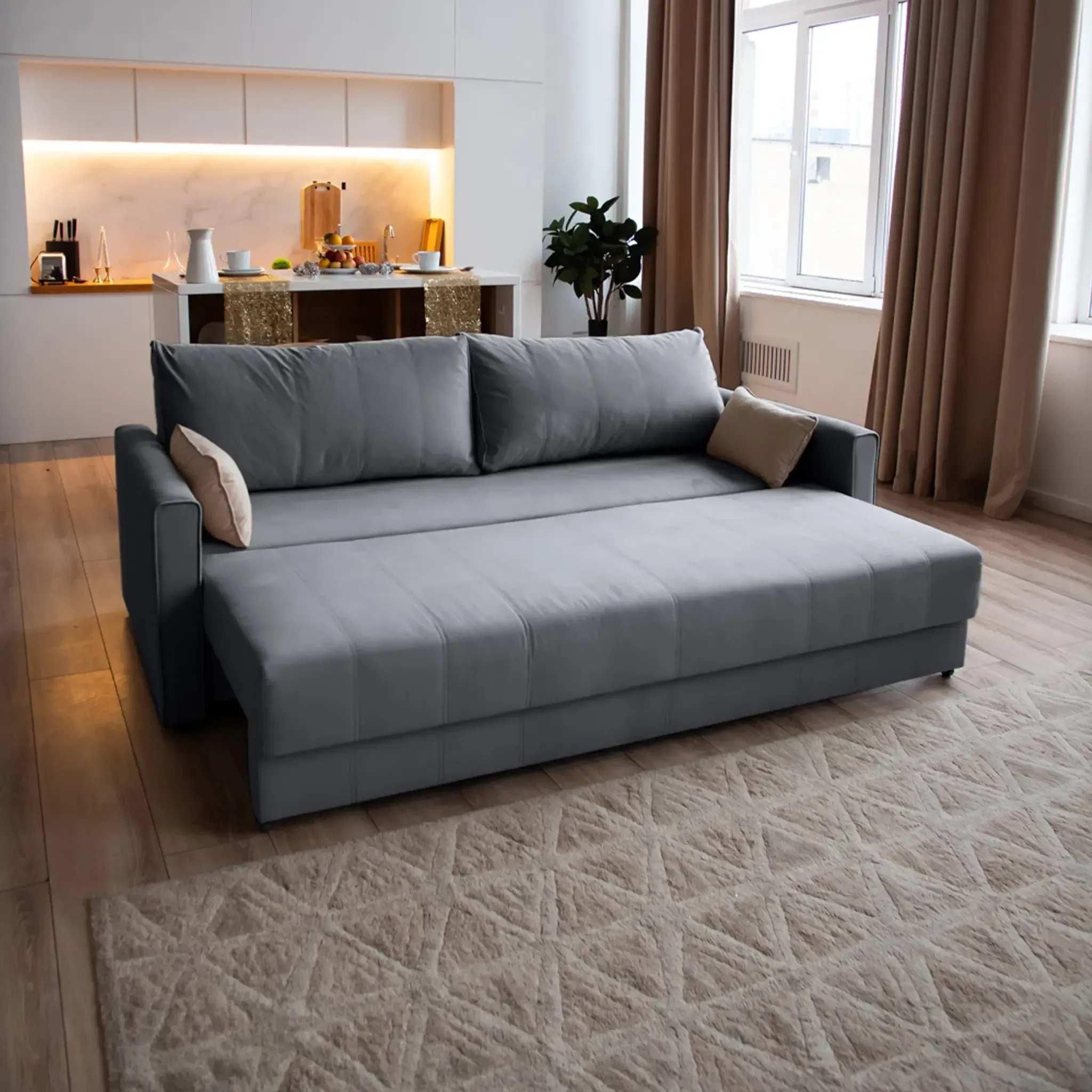Универсальный скандинавский стиль коллекции Римини идеально вписывается в современные интерьеры. Легкий прямой силуэт и актуальные расцветки неизменно смотреться дорого и красиво. Почему вам понравится диван «Римини»: Гарантия 18 месяцев: мы уверены в качестве своей продукции.Независимый пружинный блок обеспечивает здоровый сон и комфортный отдых.Обивка велюр Velutto: мягкий бархатистый велюр со слегка матовой фактурой с эффектом легкой чистки.Место для хранения: под сиденьем расположен вместительный короб для одеял и подушек. Диваны коллекции Римини легко можно представить в гостиной или детской, в просторном доме или квартире-студии. Характеристики:  Габариты (см): 221х98х90 Спальное место (см): 200х150 Высота посадочного места (см): 43 Короб для белья: Есть Каркас: Фанера / ДСП / ЛДСП / Брусок хвойных пород дерева Наполнитель: ППУ / Независимый пружинный блок / Синтепон Нагрузка на спальное место (кг): 220 кг Вес (кг): 115 кгФабрика D1 является российским производителем мебели. Мы осуществляем полный производственный цикл всего представленного ассортимента. Все используемые материалы и комплектующие сертифицированы и соответствуют САНПиН. На всю нашу продукцию мы даём гарантию 18 месяцев.
