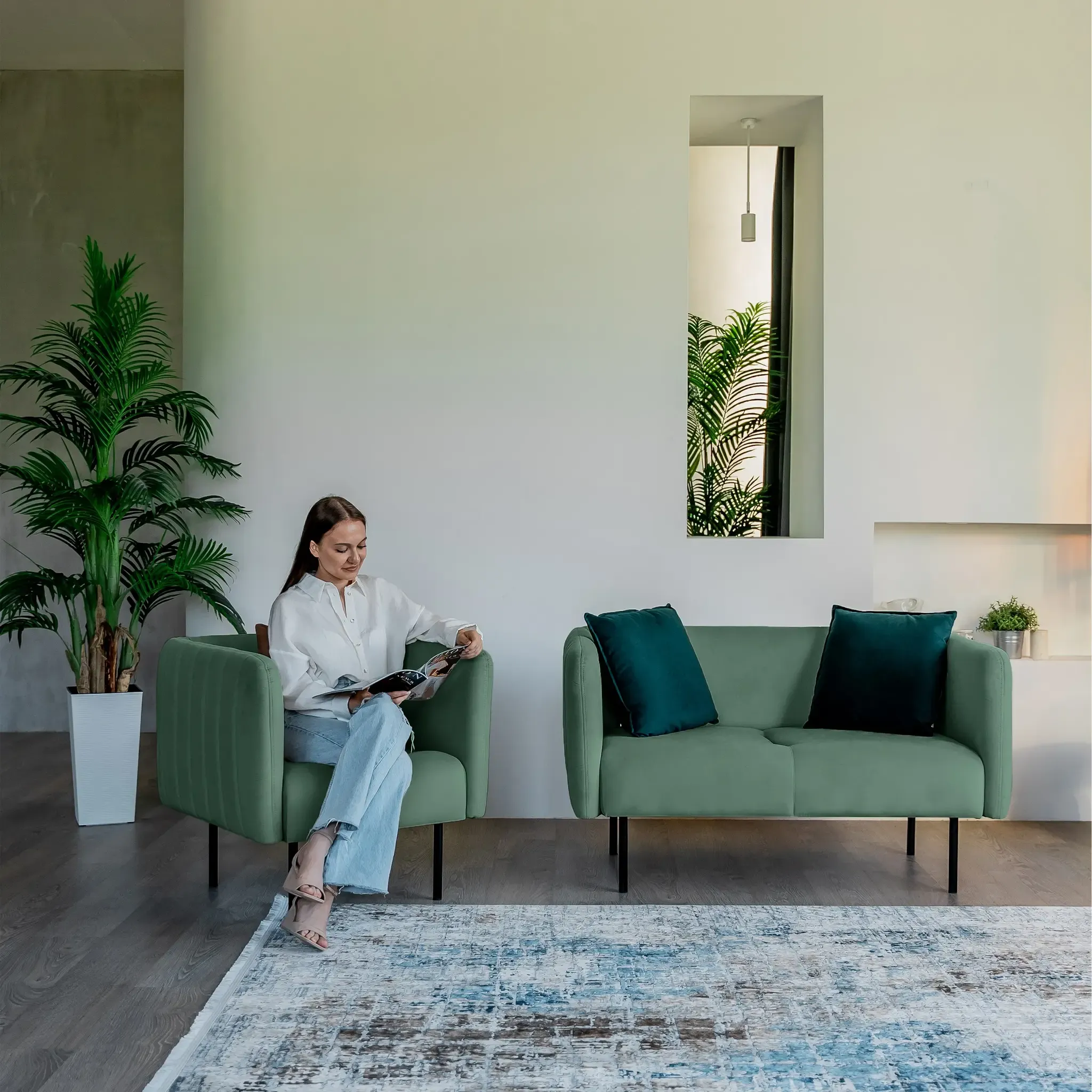 Диван Рио - это изысканный и уютный элемент мебели, который придаст вашему интерьеру нотку роскоши и комфорта. Почему вам понравится диван «Рио»:Гарантия 18 месяцев: мы уверены в качестве своей продукции.Высокоплотный ППУ 25 кг/м3 не проминается с годами.Обивка велюр Velutto: мягкий бархатистый велюр со слегка матовой фактурой с эффектом легкой чистки.Высокие ножки облегчают уборку под диваном. Этот диван отличается элегантностью и стилем, становясь центральным акцентом вашей комнаты. Велюровая обивка добавляет ощущение роскоши и комфорта, приглашая вас расслабиться и насладиться мягкостью прикосновения. Характеристики:   Габариты (см): 124х72х72   Высота посадочного места (см): 45   Тип матраса: ППУ   Каркас: Фанера / ДСП   Высота ножек (см): 22   Вес (кг): 28   Максимальная нагрузка (кг): 180   Фабрика D1 является российским производителем мебели. Мы осуществляем полный производственный цикл всего представленного ассортимента. Все используемые материалы и комплектующие сертифицированы и соответствуют САНПиН. На всю нашу продукцию мы даём гарантию 18 месяцев.