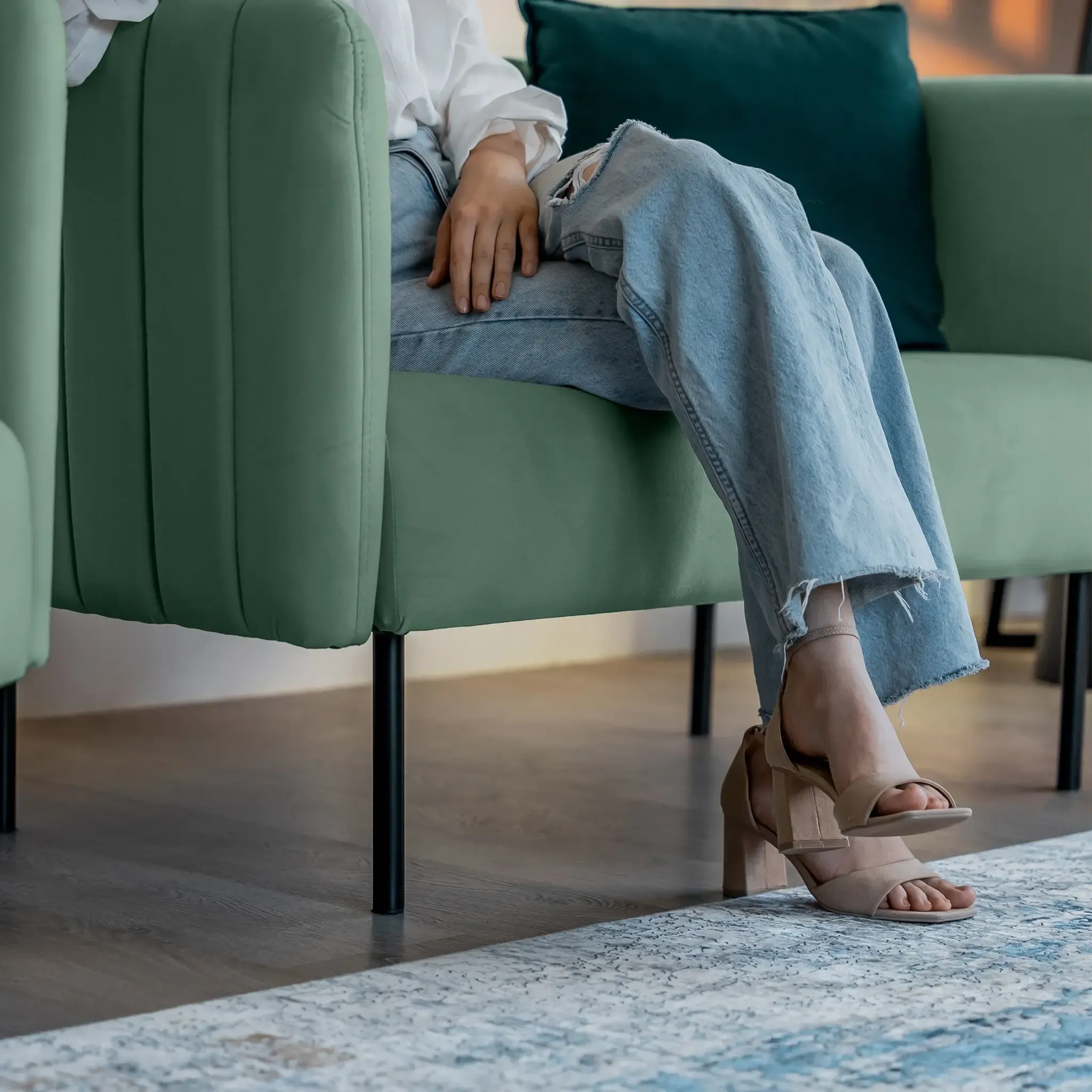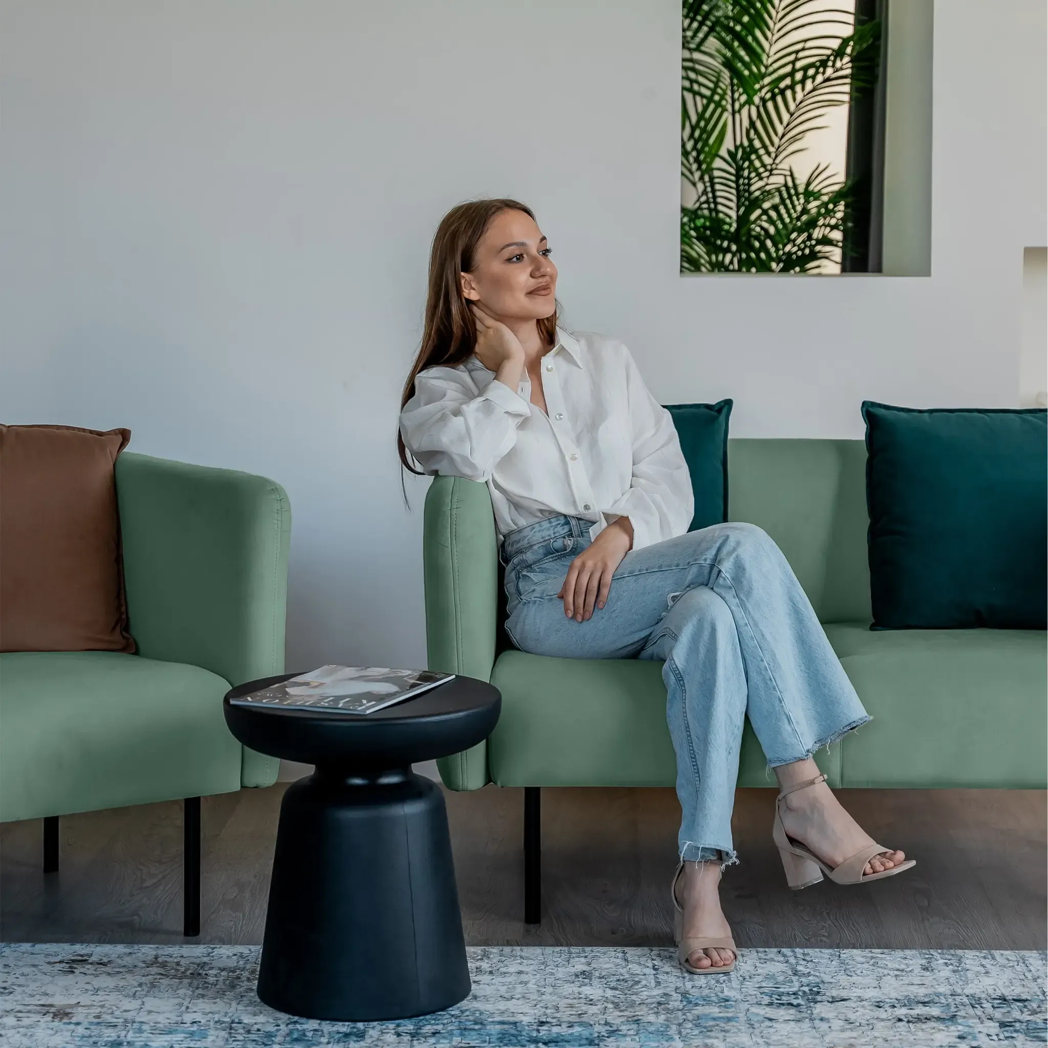 НОВЫЕ ЭМОЦИИ Диван прямой, темно-зеленый, банкетка слева