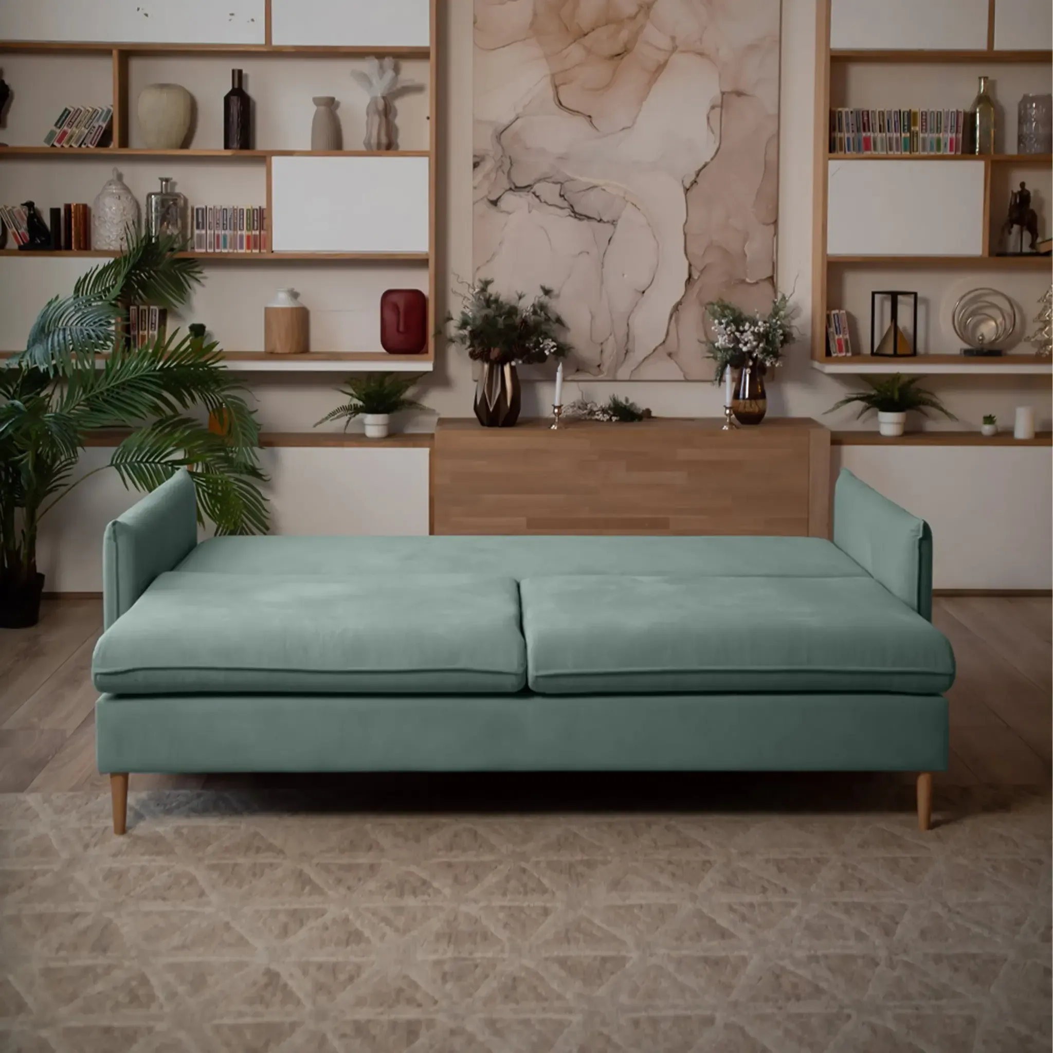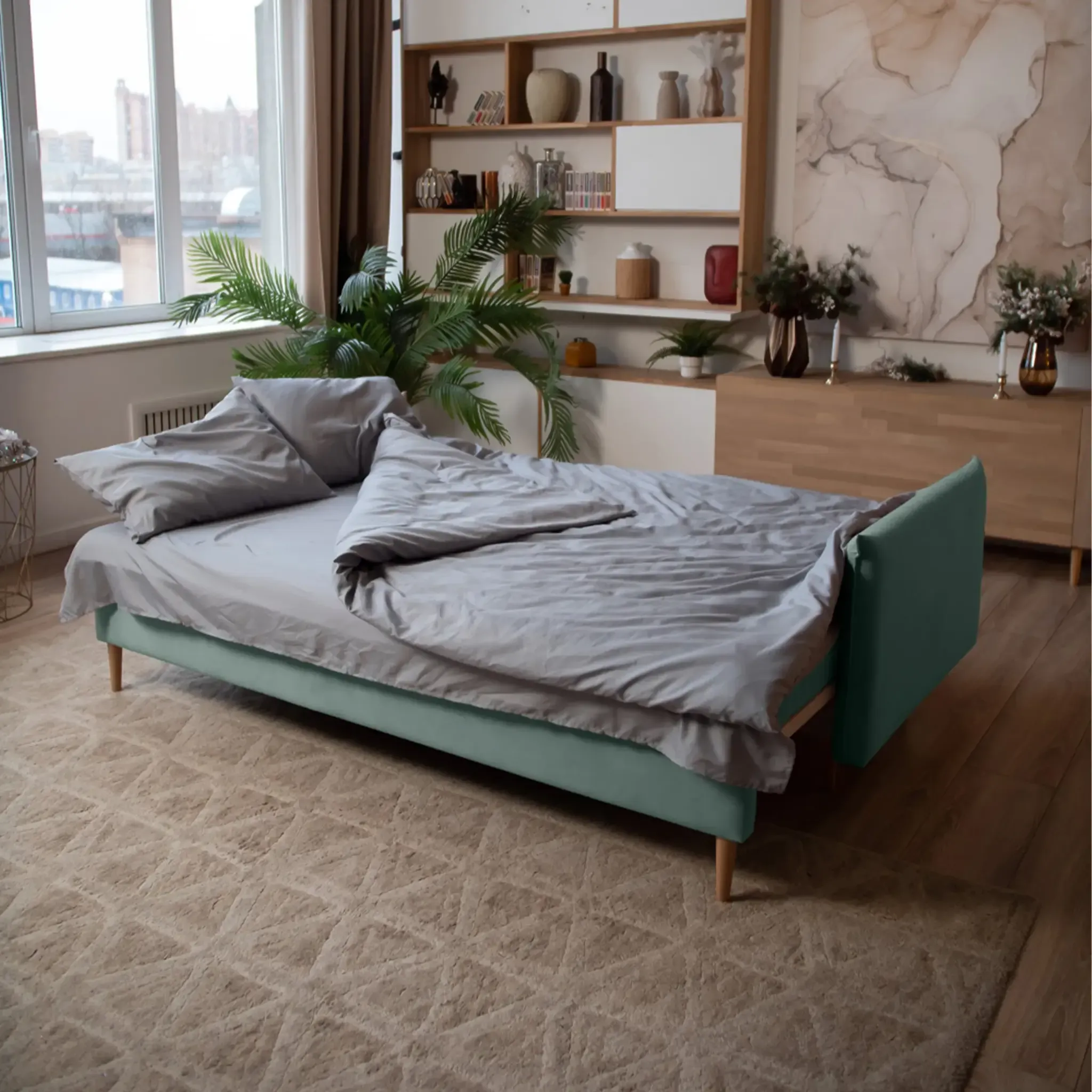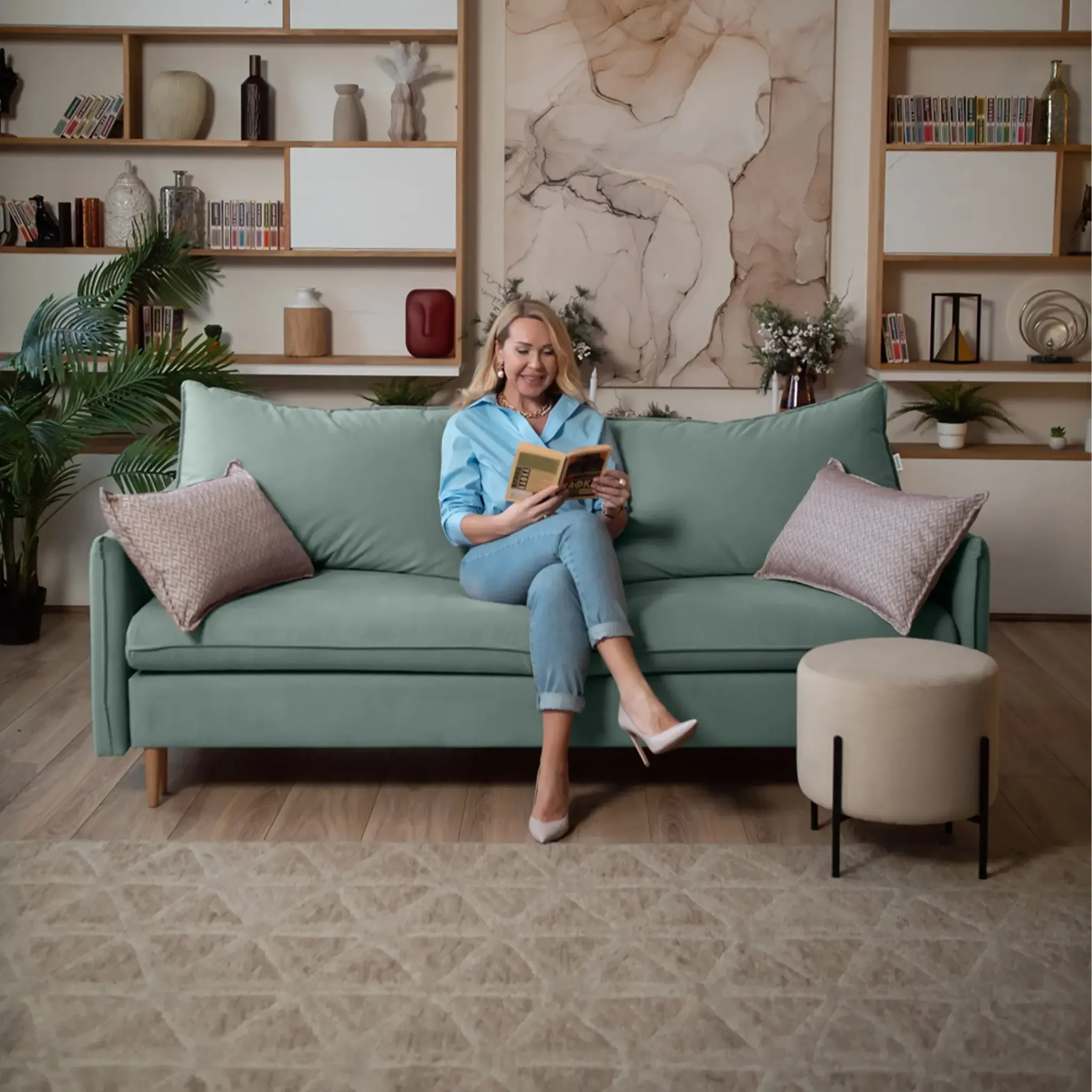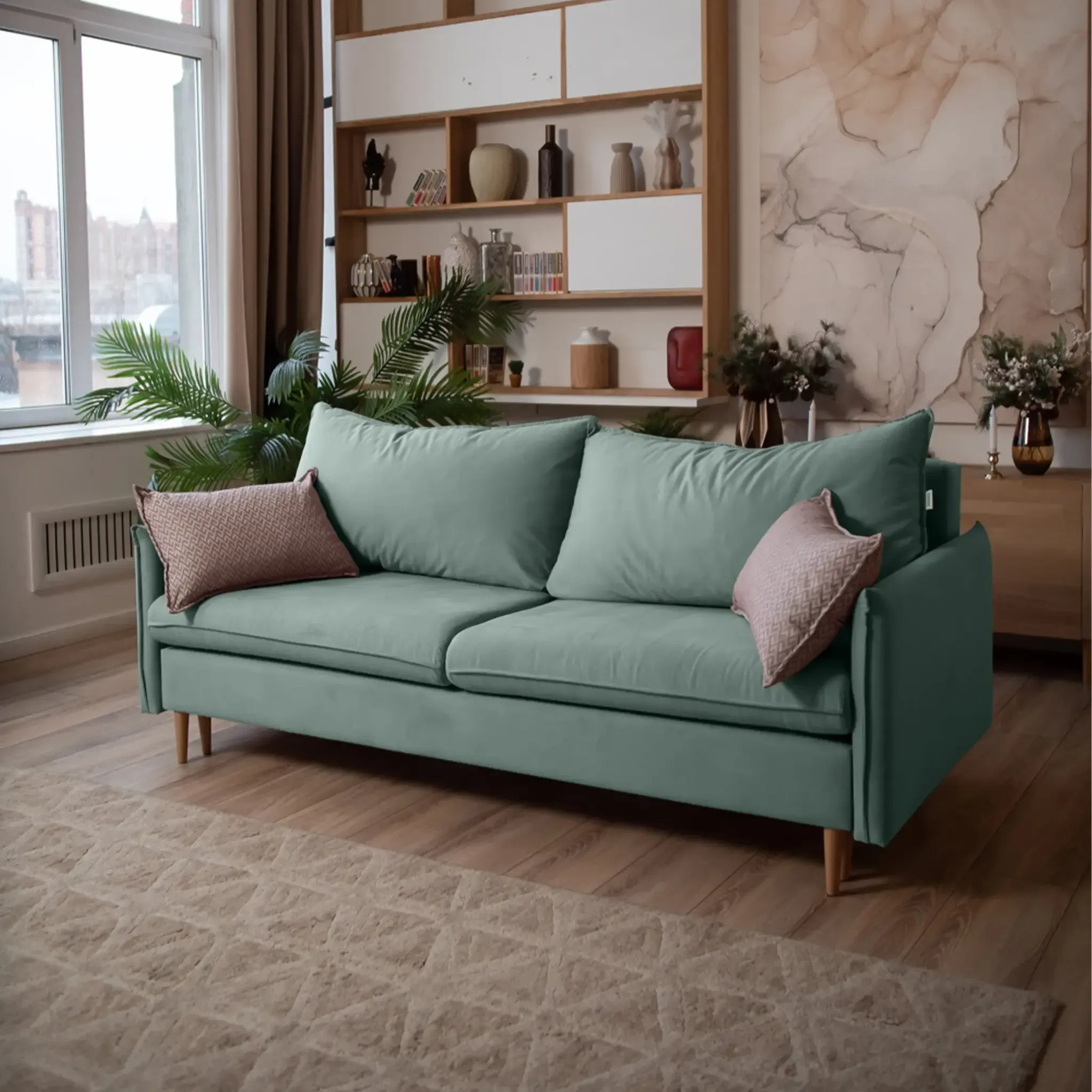 Сканди - ультрасовременная модель в любимом многими скандинавском стиле. Благодаря лаконичным линиям силуэта и простым формам диван отлично впишется в современный интерьер. Почему вам понравится диван «Сканди»: Гарантия 18 месяцев: мы уверены в качестве своей продукции.Независимый пружинный блок обеспечивает здоровый сон и комфортный отдых.Обивка велюр Velutto: мягкий бархатистый велюр со слегка матовой фактурой с эффектом легкой чистки.Место для хранения: под сиденьем расположен вместительный короб для одеял и подушек.Высокие ножки облегчают уборку под диваном. Узкие подлокотники экономят пространство и при этом удобные и функциональные. Большие мягкие подспинные подушки обеспечивают комфортную посадку и гарантируют полноценный отдых. Характеристики:  Габариты (см): 212х96х90 Спальное место (см): 190х144 Высота посадочного места (см): 46 Короб для белья: Есть Наполнитель: Независимый пружинный блок/Пружины змейка / ППУ Каркас: Массив дерева/Фанера/ДСП/ДВП Вес (кг): 91  Фабрика D1 является российским производителем мебели. Мы осуществляем полный производственный цикл всего представленного ассортимента. Все используемые материалы и комплектующие сертифицированы и соответствуют САНПиН. На всю нашу продукцию мы даём гарантию 18 месяцев.