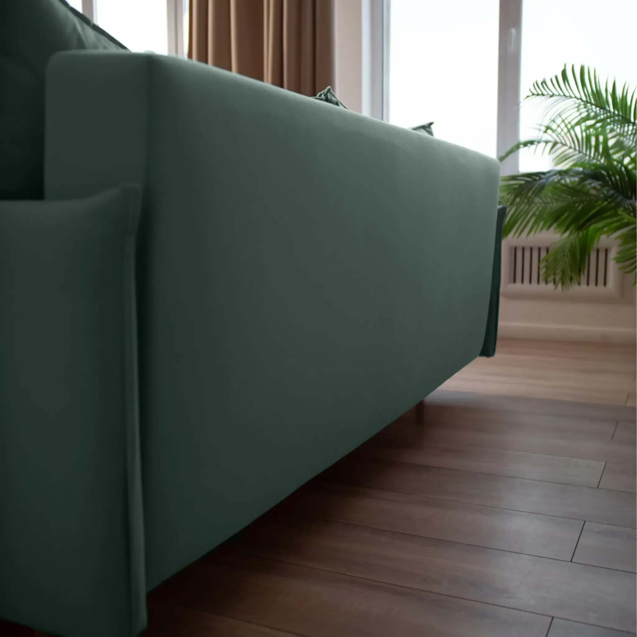 НОВЫЕ ЭМОЦИИ Диван прямой, темно-зеленый, банкетка слева