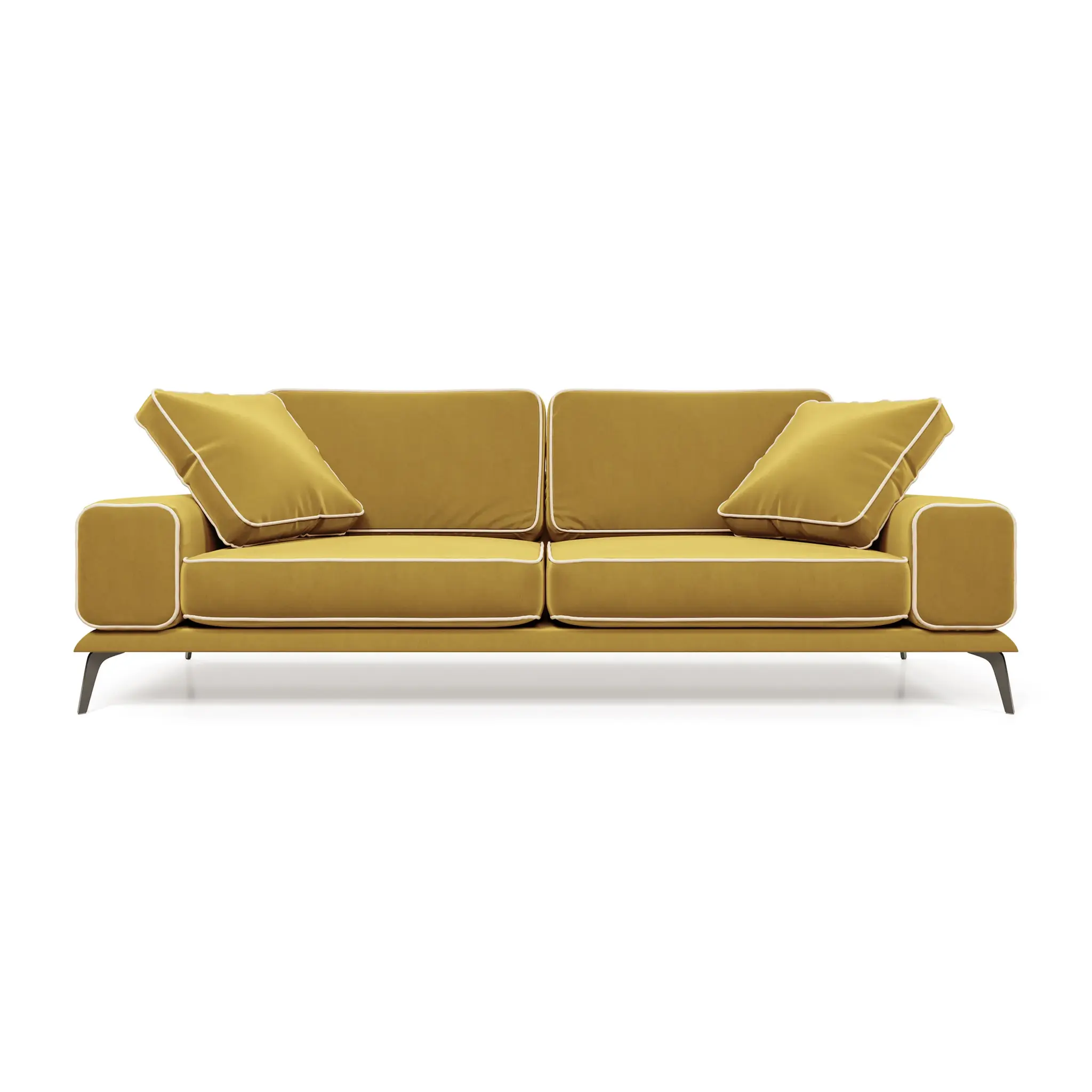 Диван Солнечное побережье отличается легкостью и воздушностью благодаря высоким ножкам, которые меняют визуальное восприятие объемов, создавая современный и стильный образ. Сбалансированный дизайн с широкими подлокотниками и пышными подушками создает ощущение комфорта и уюта. Почему вам понравится диван «Солнечное побережье»:  Гарантия 18 месяцев: мы уверены в качестве своей продукции. Внутри дивана находится гипоаллергенный высокоэластичный наполнитель «Аселекс», который сохраняет заданную форму годами. Обивка велюр Novus от Chistetika: технология Waterproof делает ткань устойчивой к влаге и, благодаря этому, обивка долговечна и проста в уходе. Высокие ножки облегчают уборку под диваном. Подушки в комплекте: мягкость и уют для максимального комфорта.  Ширина дивана делает его идеальным выбором для владельцев малогабаритных квартир, желающих добавить комфорт и уют в свое пространство. Мягкие подушки обеспечивают тепло и уют, а разнообразие обивочных тканей помогает подобрать идеальный вариант для вашего интерьера. Спинка и сиденье выполнены из высокоэластичного полиуретана, а прочные металлические ножки обеспечивают дополнительную устойчивость. Характеристики  Габариты: 230х107х87 см Высота сиденья: 42 см Максимальная нагрузка: 220 кг Нераскладной интерьерный диван Прочный каркас из высококачественной фанеры  Фабрика D1 является российским производителем мебели. Мы осуществляем полный производственный цикл всего представленного ассортимента. Все используемые материалы и комплектующие сертифицированы и соответствуют САНПиН. На всю нашу продукцию мы даём гарантию 18 месяцев.