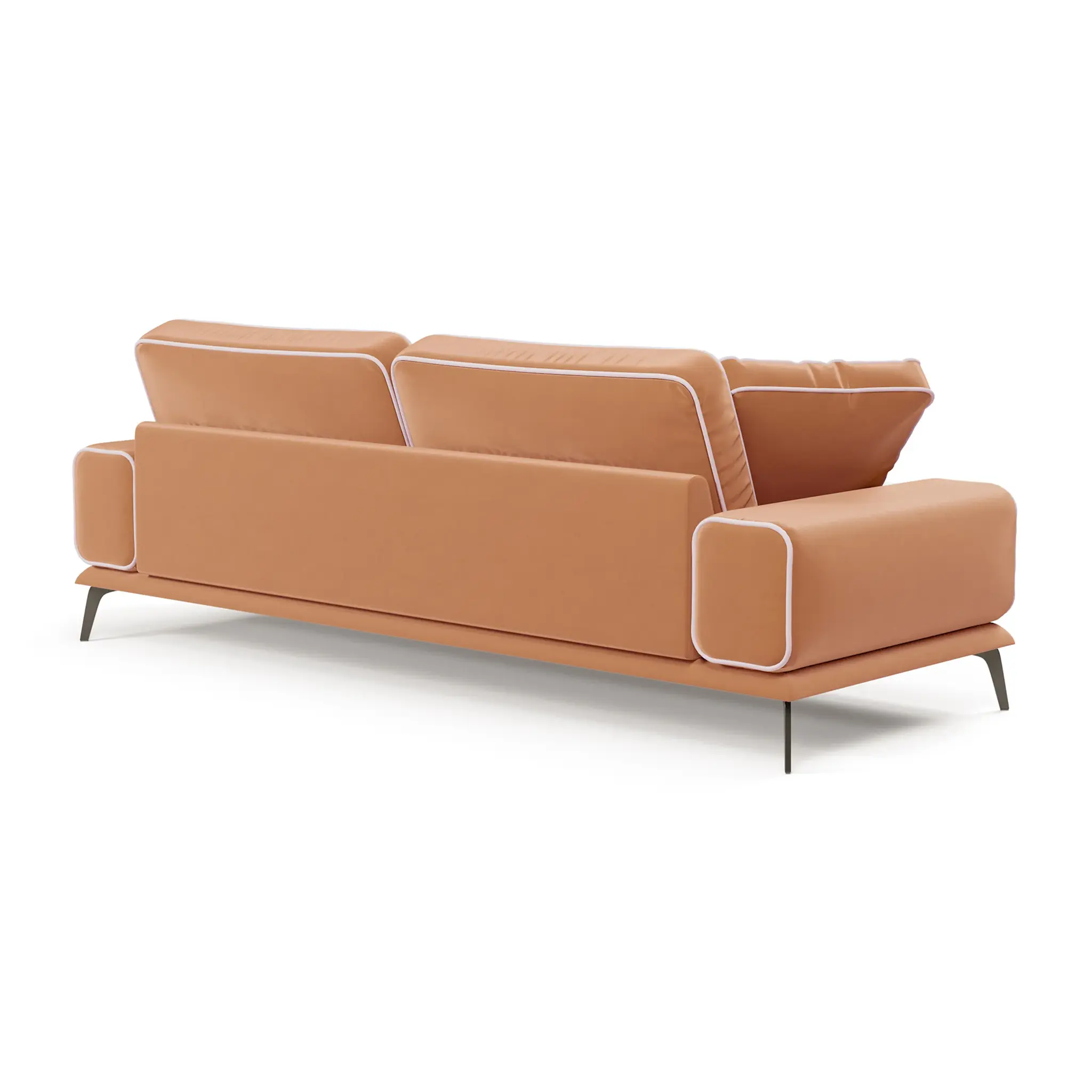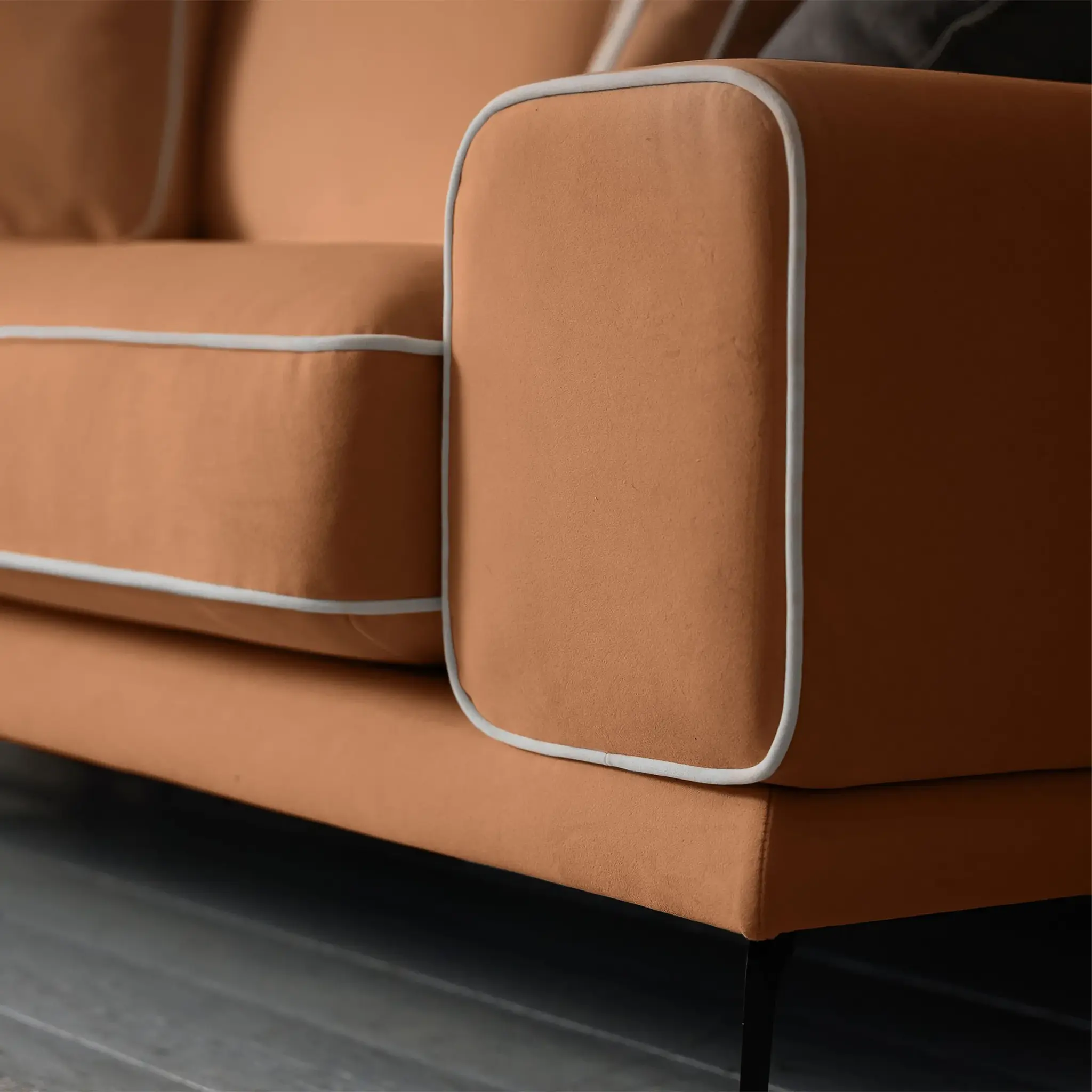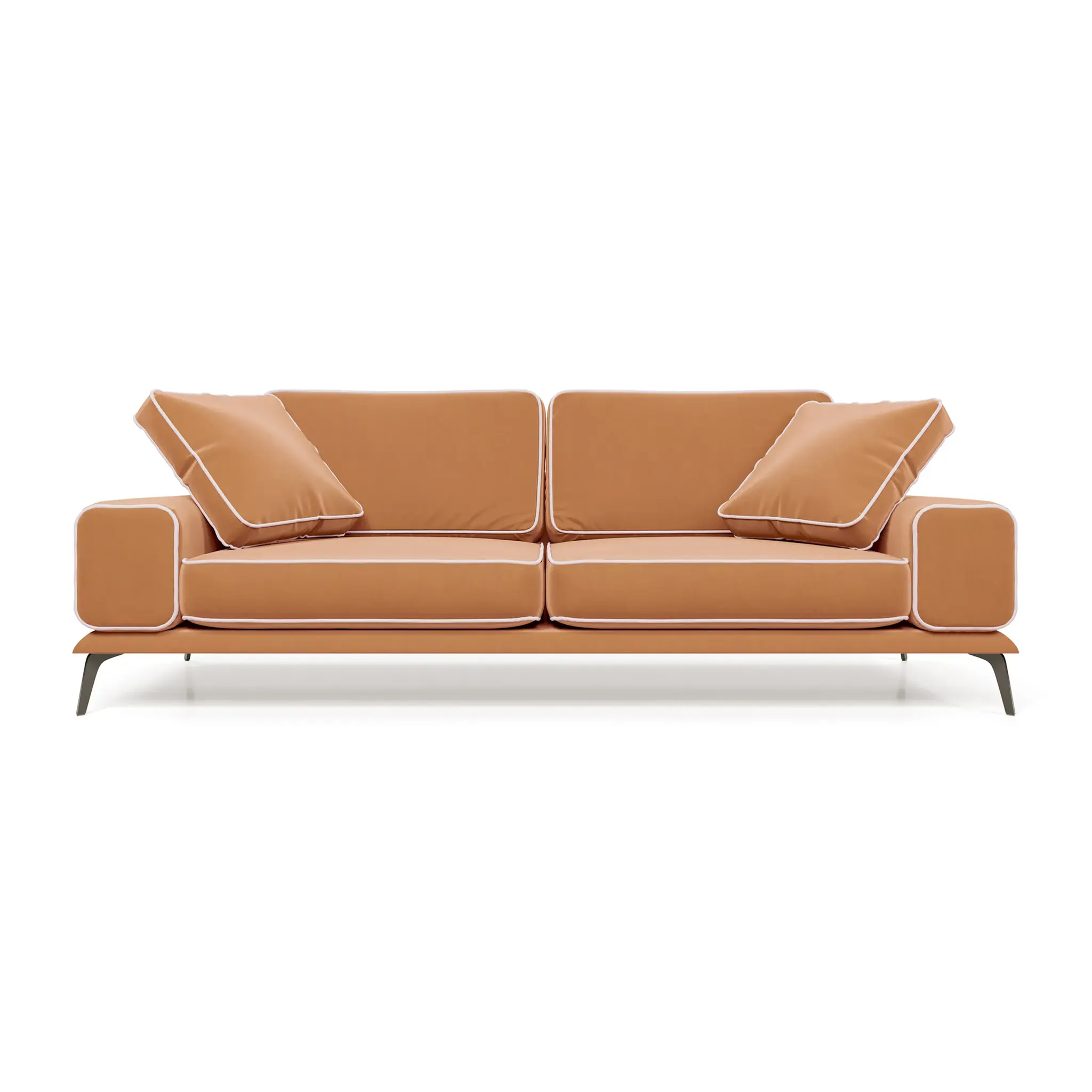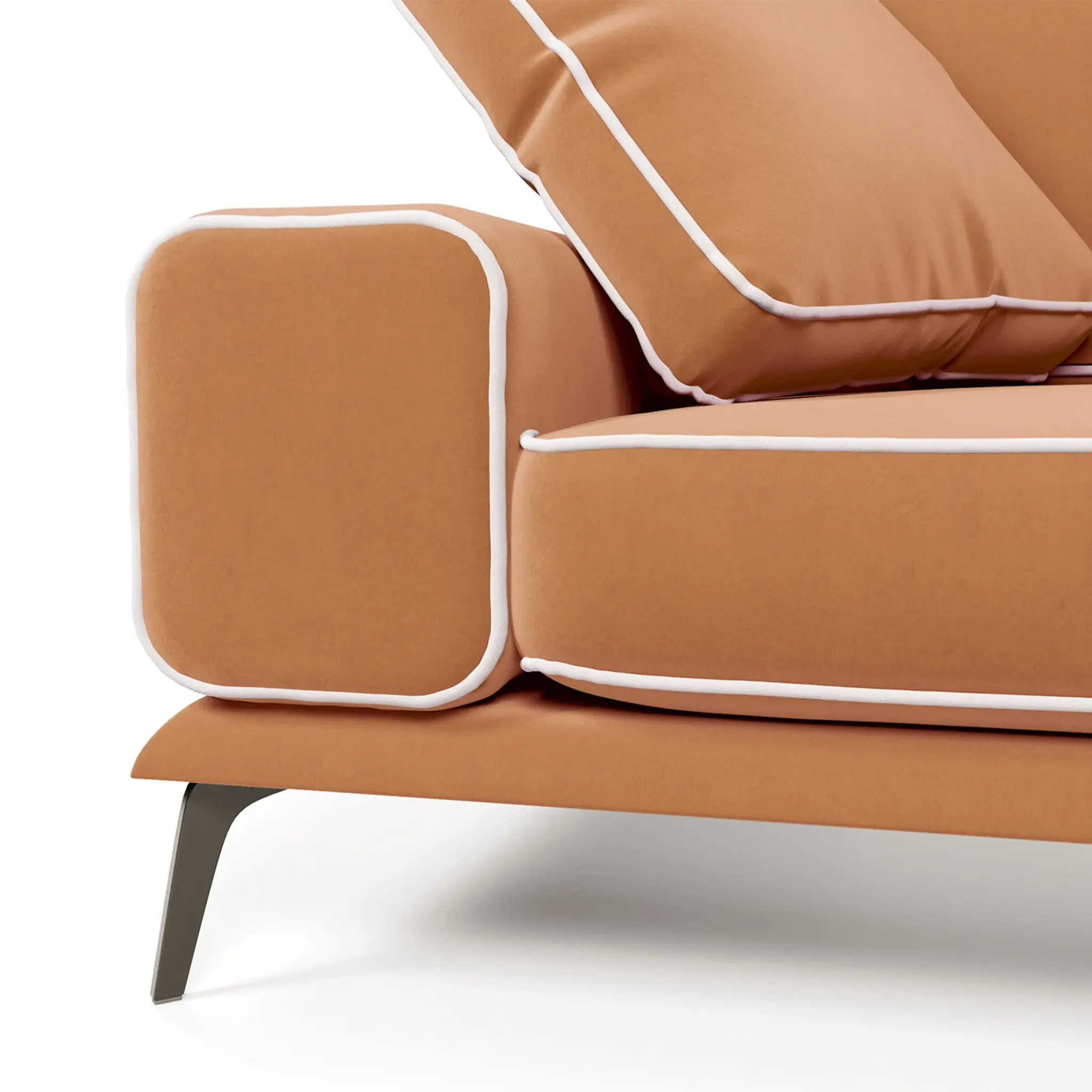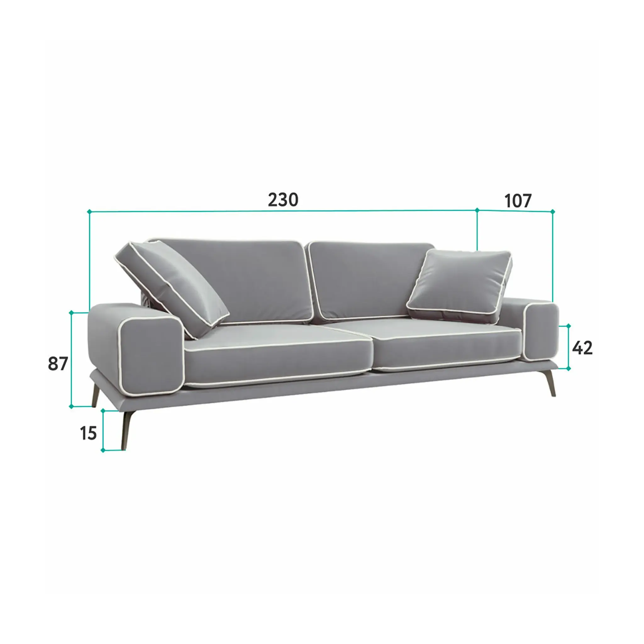 Диван Солнечное побережье отличается легкостью и воздушностью благодаря высоким ножкам, которые меняют визуальное восприятие объемов, создавая современный и стильный образ. Сбалансированный дизайн с широкими подлокотниками и пышными подушками создает ощущение комфорта и уюта. Почему вам понравится диван «Солнечное побережье»:  Гарантия 18 месяцев: мы уверены в качестве своей продукции. Внутри дивана находится гипоаллергенный высокоэластичный наполнитель «Аселекс», который сохраняет заданную форму годами. Обивка велюр Novus от Chistetika: технология Waterproof делает ткань устойчивой к влаге и, благодаря этому, обивка долговечна и проста в уходе. Высокие ножки облегчают уборку под диваном. Подушки в комплекте: мягкость и уют для максимального комфорта.  Ширина дивана делает его идеальным выбором для владельцев малогабаритных квартир, желающих добавить комфорт и уют в свое пространство. Мягкие подушки обеспечивают тепло и уют, а разнообразие обивочных тканей помогает подобрать идеальный вариант для вашего интерьера. Спинка и сиденье выполнены из высокоэластичного полиуретана, а прочные металлические ножки обеспечивают дополнительную устойчивость. Характеристики  Габариты: 230х107х87 см Высота сиденья: 42 см Максимальная нагрузка: 220 кг Нераскладной интерьерный диван Прочный каркас из высококачественной фанеры  Фабрика D1 является российским производителем мебели. Мы осуществляем полный производственный цикл всего представленного ассортимента. Все используемые материалы и комплектующие сертифицированы и соответствуют САНПиН. На всю нашу продукцию мы даём гарантию 18 месяцев.