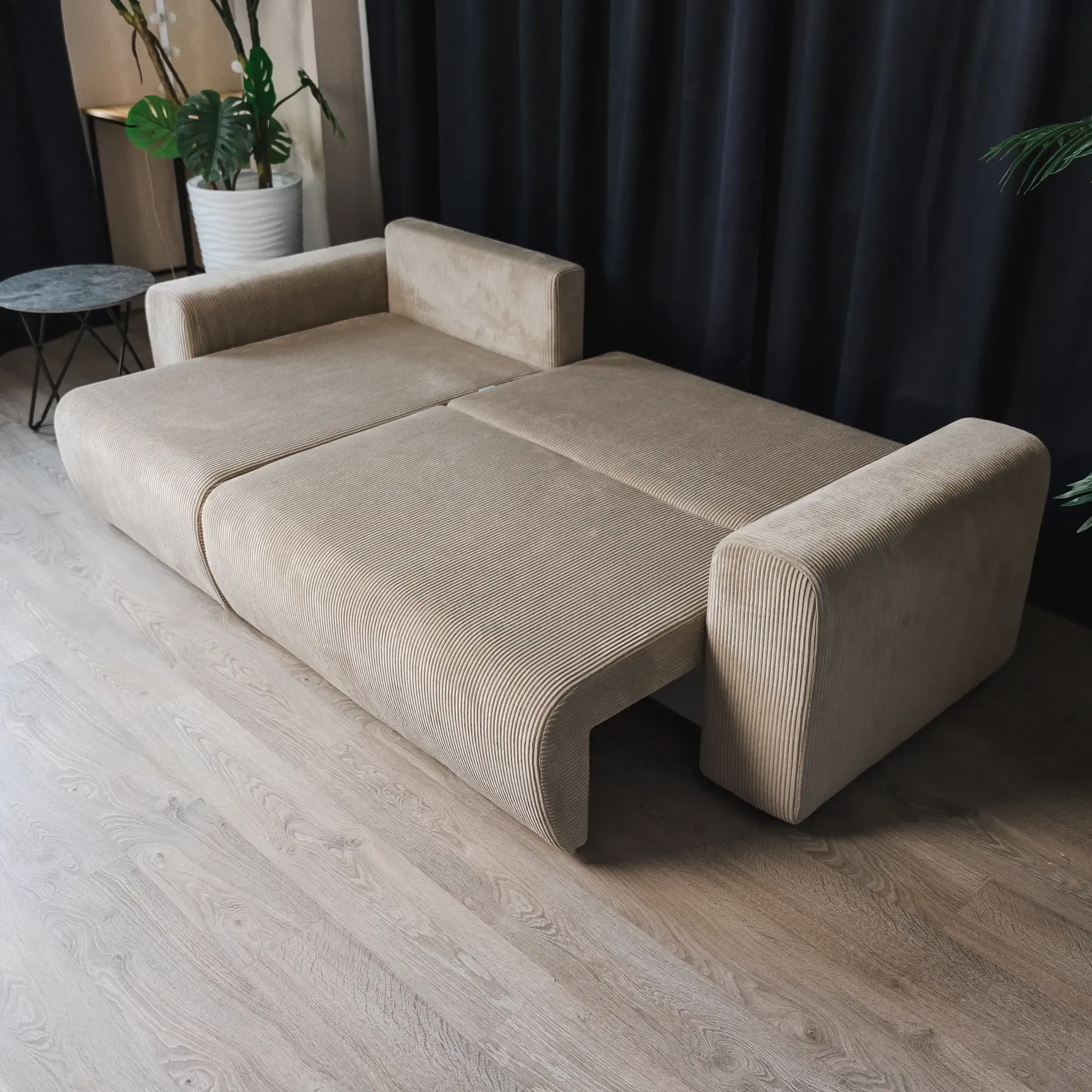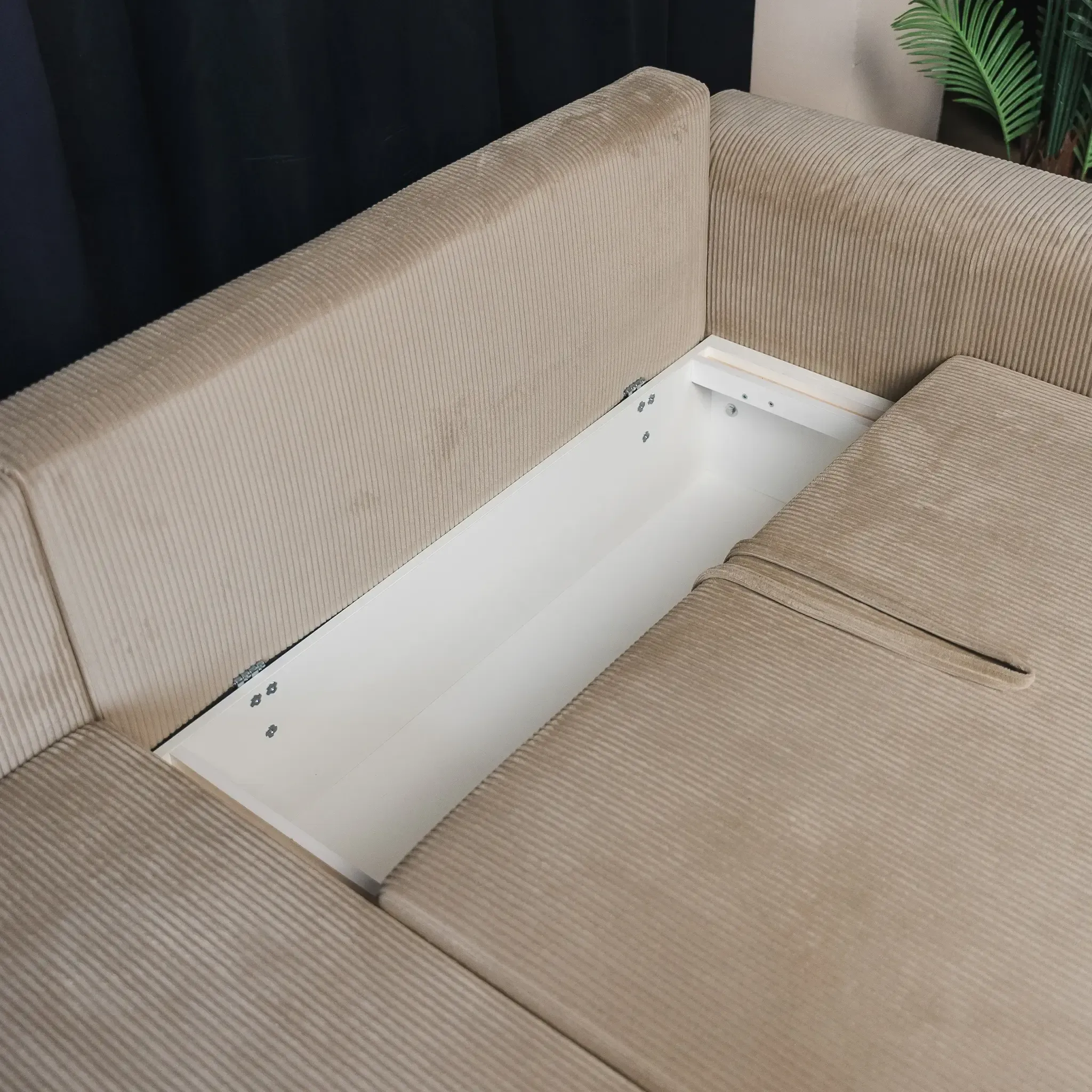 Всего два движения — и диван превращается в просторное спальное место размером 140х200 см, готовое принять вас или ваших гостей. Вместительный бельевой короб под сиденьем предоставляет дополнительное место для хранения подушек, одеял и других мелочей, помогая поддерживать порядок.
