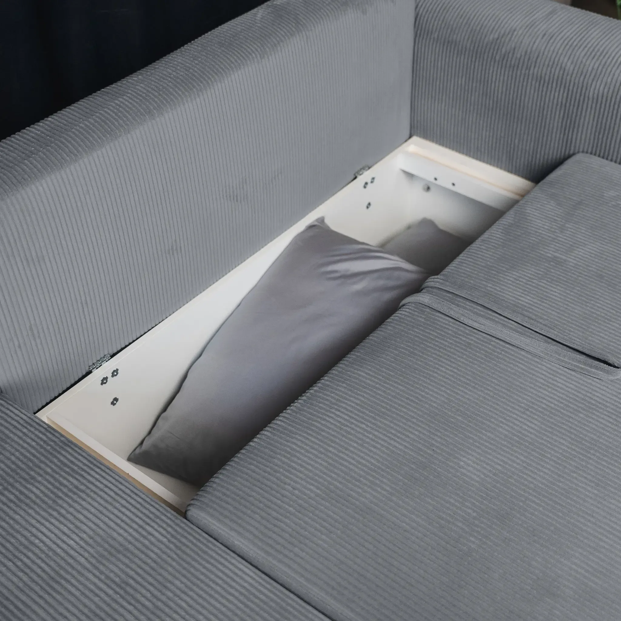 Всего два движения — и диван превращается в просторное спальное место размером 140х200 см, готовое принять вас или ваших гостей. Вместительный бельевой короб под сиденьем предоставляет дополнительное место для хранения подушек, одеял и других мелочей, помогая поддерживать порядок.