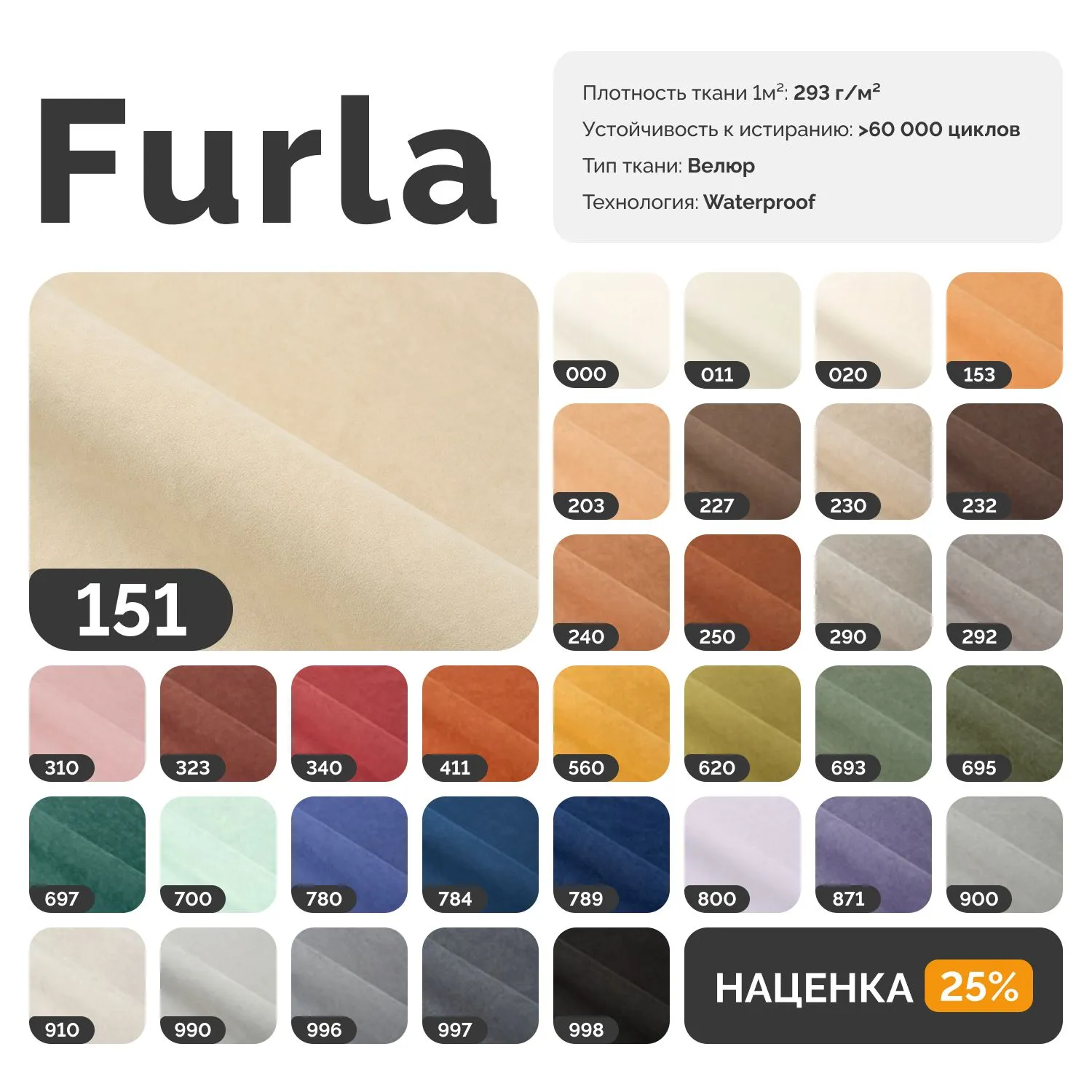 Обивка имеет повышенный уровень износоустойчивости 65 000 циклов (по тесту Мартиндейла).