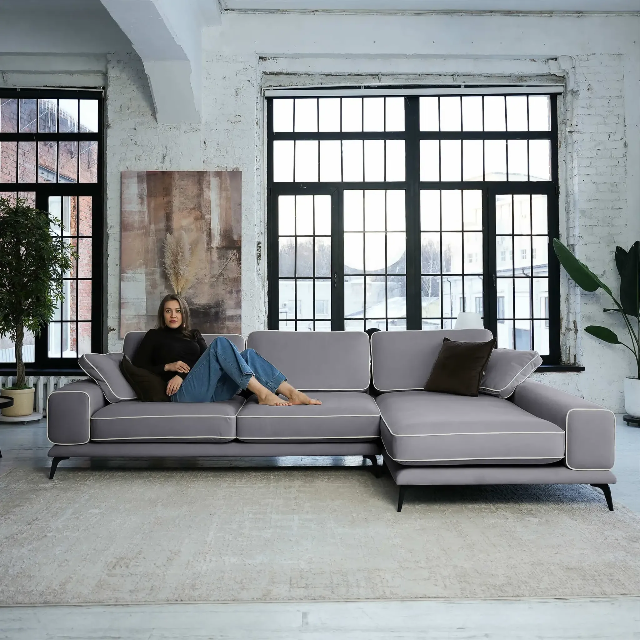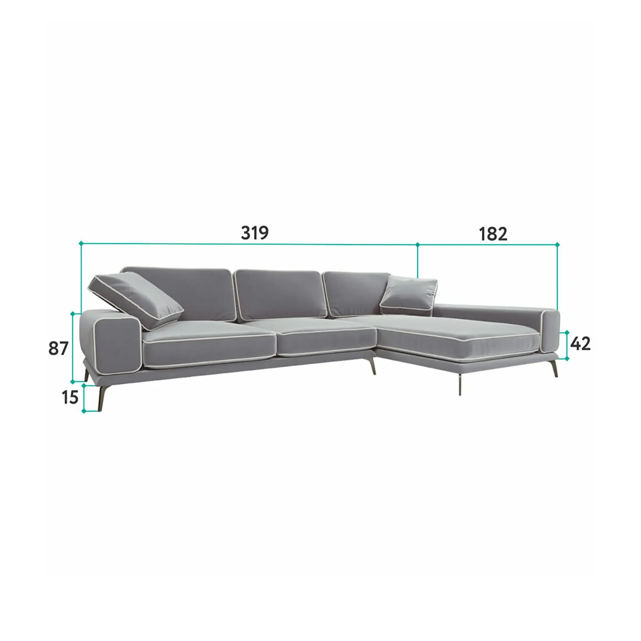 Диван Солнечное побережье отличается легкостью и воздушностью благодаря высоким ножкам, которые меняют визуальное восприятие объемов, создавая современный и стильный образ. Сбалансированный дизайн с широкими подлокотниками и пышными подушками создает ощущение комфорта и уюта. Почему вам понравится диван «Солнечное побережье»:  Гарантия 18 месяцев: мы уверены в качестве своей продукции. Внутри дивана находится гипоаллергенный высокоэластичный наполнитель «Аселекс», который сохраняет заданную форму годами. Обивка велюр Novus от Chistetika: технология Waterproof делает ткань устойчивой к влаге и, благодаря этому, обивка долговечна и проста в уходе. Универсальный угол: вы можете установить его на правую или левую сторону. Высокие ножки облегчают уборку под диваном. Подушки в комплекте: мягкость и уют для максимального комфорта.  Ширина дивана делает его идеальным выбором для владельцев малогабаритных квартир, желающих добавить комфорт и уют в свое пространство. Мягкие подушки обеспечивают тепло и уют, а разнообразие обивочных тканей помогает подобрать идеальный вариант для вашего интерьера. Спинка и сиденье выполнены из высокоэластичного полиуретана, а прочные металлические ножки обеспечивают дополнительную устойчивость. Характеристики  Габариты: 319x182x87 см Высота сиденья: 42 см Максимальная нагрузка: 220 кг Нераскладной интерьерный диван Прочный каркас из высококачественной фанеры  Фабрика D1 является российским производителем мебели. Мы осуществляем полный производственный цикл всего представленного ассортимента. Все используемые материалы и комплектующие сертифицированы и соответствуют САНПиН. На всю нашу продукцию мы даём гарантию 18 месяцев.