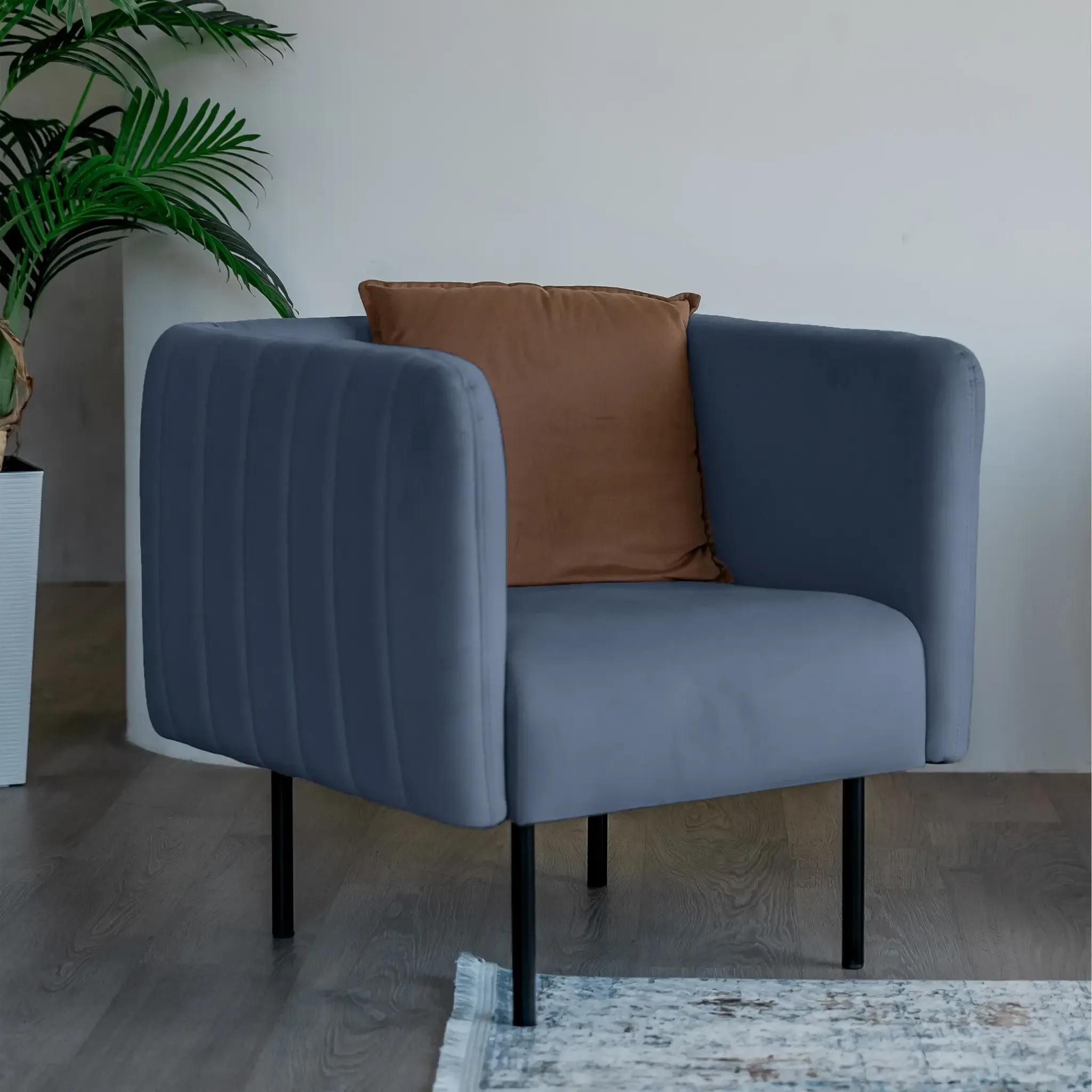 Ультрасовременное кресло РИО станет украшением дома, дачи, ресторана или офиса. Актуальный дизайн сочетается с удобством модели. Комфортное сиденье располагается на минималистичных ножках. Кресло смотрится легко и воздушно! Доступны яркие и нейтральные цвета обивки. ОБИВКА Обивка кресла - мягкий бархатистый велюр. Это тактильно приятная и очень практичная ткань.· Обивка имеет повышенный уровень износоустойчивости 60 000 циклов (по тесту Мартиндейла).· Ткань рекомендована для владельцев домашних животных.· Для велюра пригодна профессиональная химчистка, сухая чистка и чистка влажной губкой. ОСНОВАНИЕ Высокоплотный ППУ-матрас располагается на основании из пружинных змеек. Это гарантирует удобство и комфорт при отдыхе на кресле. КАРКАС В конструкции кресла используются сертифицированные материалы из натурального дерева и экологичная фанера. Каркас надежный, прочный, долговечный и безопасный! Характеристики:  Габариты (см): 70х70х75 Высота посадочного места (см): 45 Каркас: Фанера / ДСП Высота ножек (см): 22 Вес (кг): 17  Фабрика D1 является российским производителем мебели. Мы осуществляем полный производственный цикл всего представленного ассортимента. Все используемые материалы и комплектующие сертифицированы и соответствуют САНПиН. На всю нашу продукцию мы даём гарантию 18 месяцев.