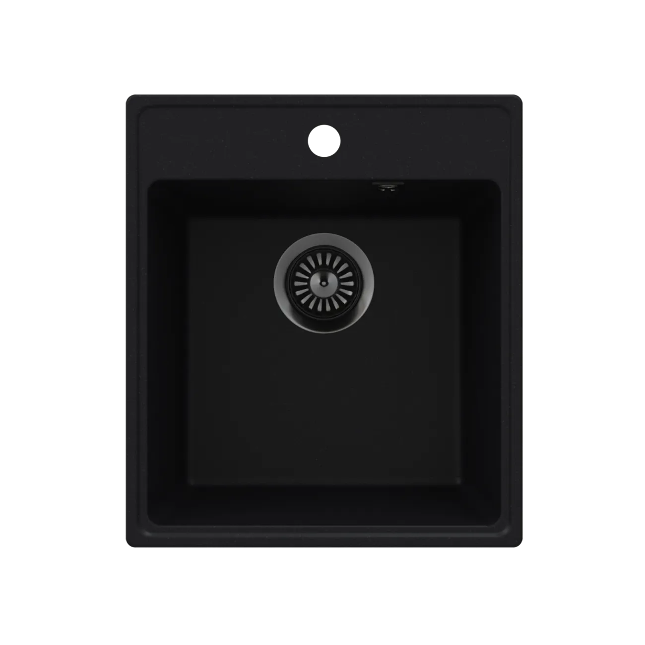 Компактная квадратная кухонная мойка с вместительной чашей, изготовленная на современном автоматизированном оборудовании из высококачественных кварцевых композитов по инжекционной технологии (литье под давлением).