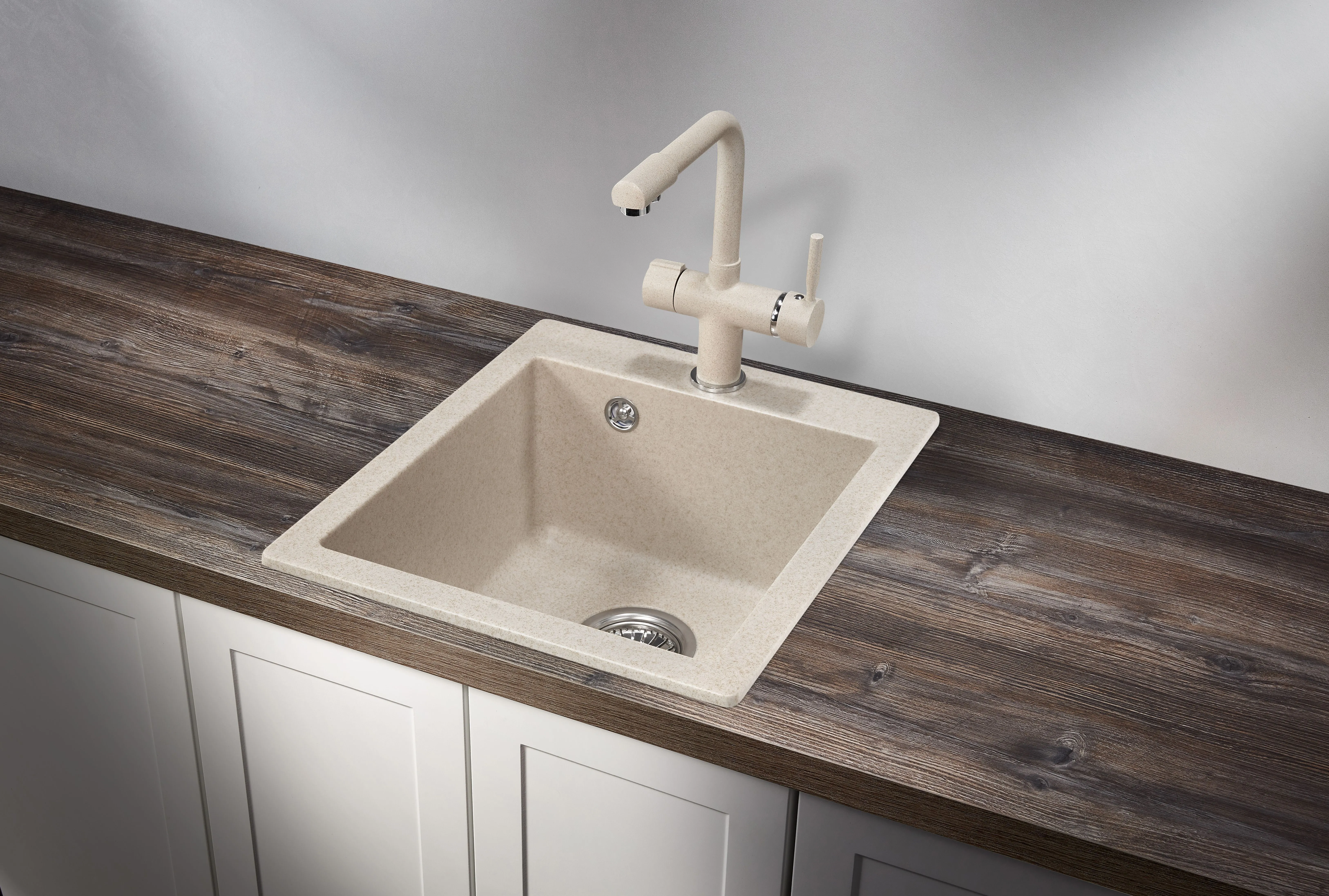 Компактная и вместительная мойка с удобной площадкой под смеситель, с функциональной чашей, отлично подходит для кухни любого размера. Необходимо учитывать ширину пристенного канта при установке мойки возле стены или пенала. Модель представлена в 8-ми цветах.