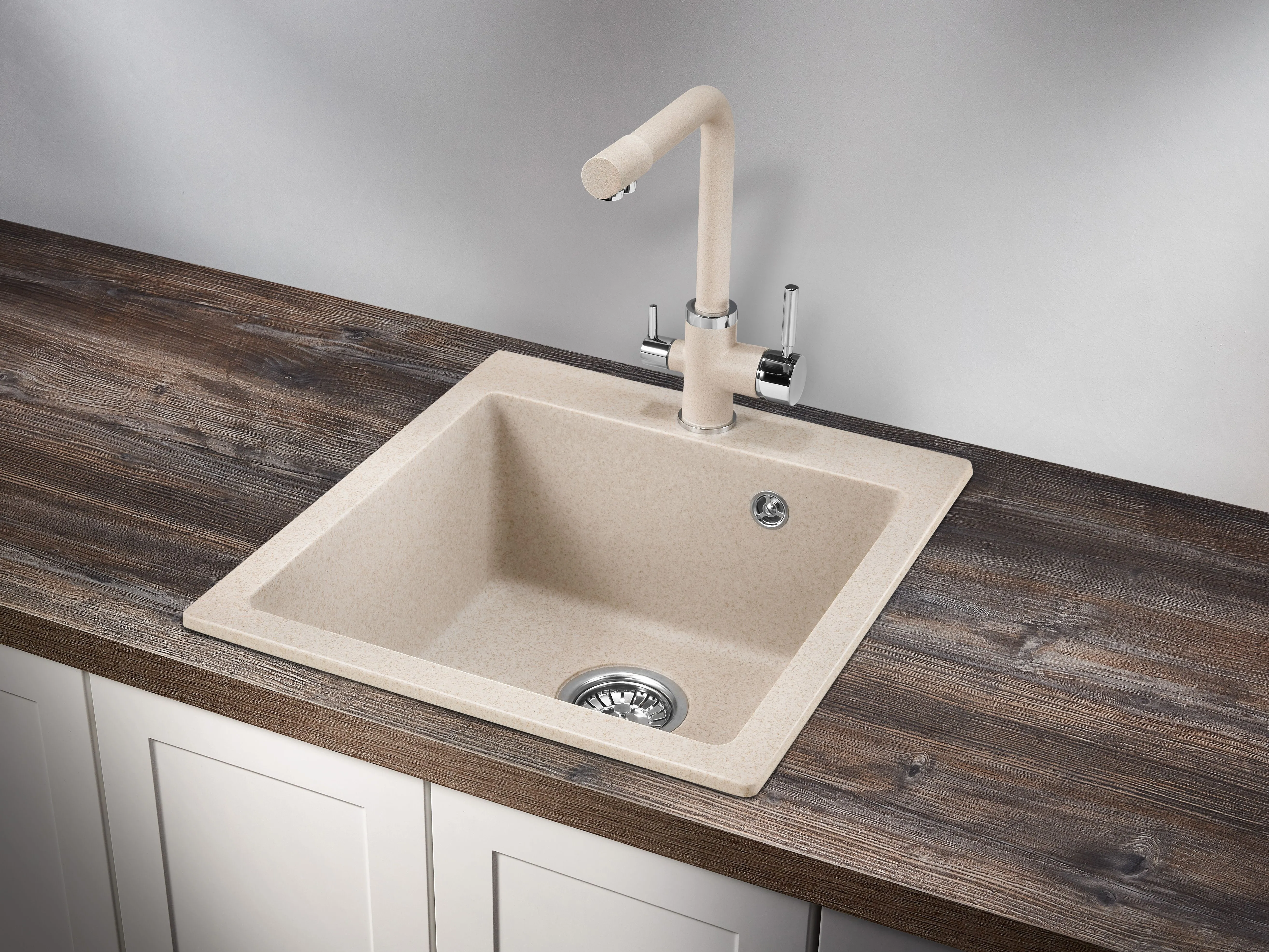 Компактная и вместительная мойка с удобной площадкой под смеситель, с функциональной прямоугольной чашей и востребованным размером для шкафа 500 мм, подходит для кухни любого размера. Необходимо учитывать ширину пристенного канта при установке мойки возле стены или пенала. Модель представлена в 10-и цветах.