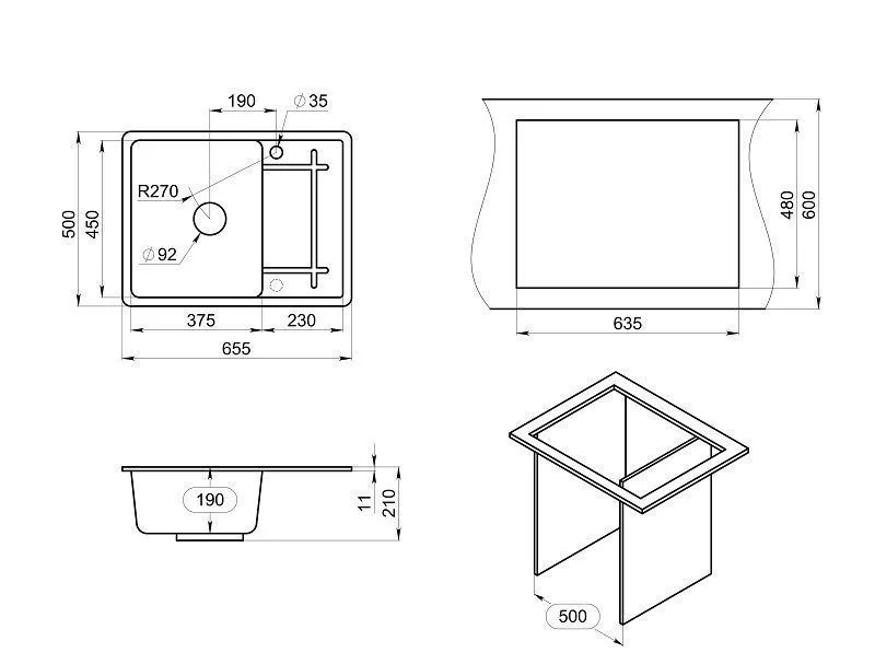 6501, ТУРМАЛИН, кухонная мойка, кварц