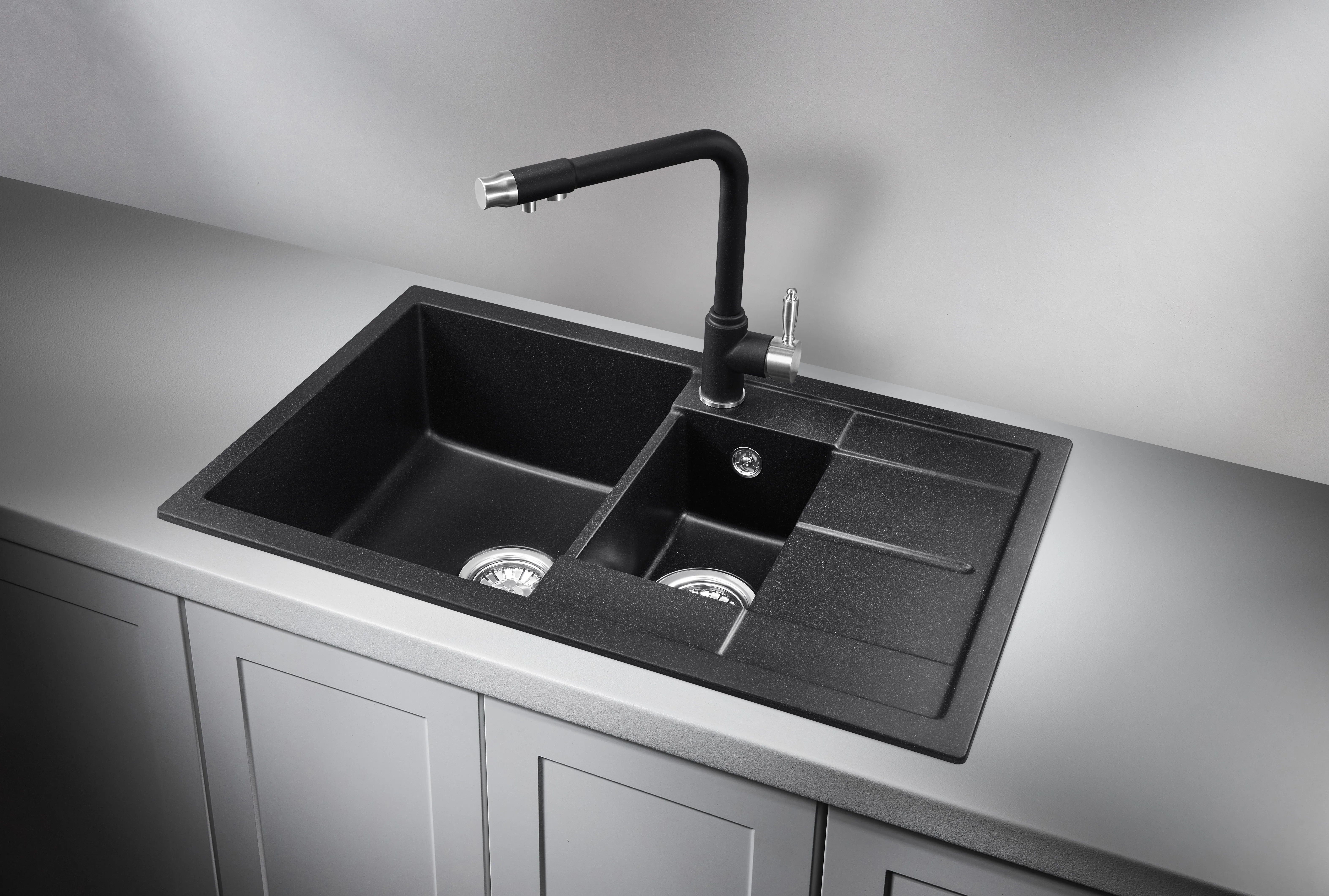 3601, ЧЁРНЫЙ, кухонная мойка, кварц
