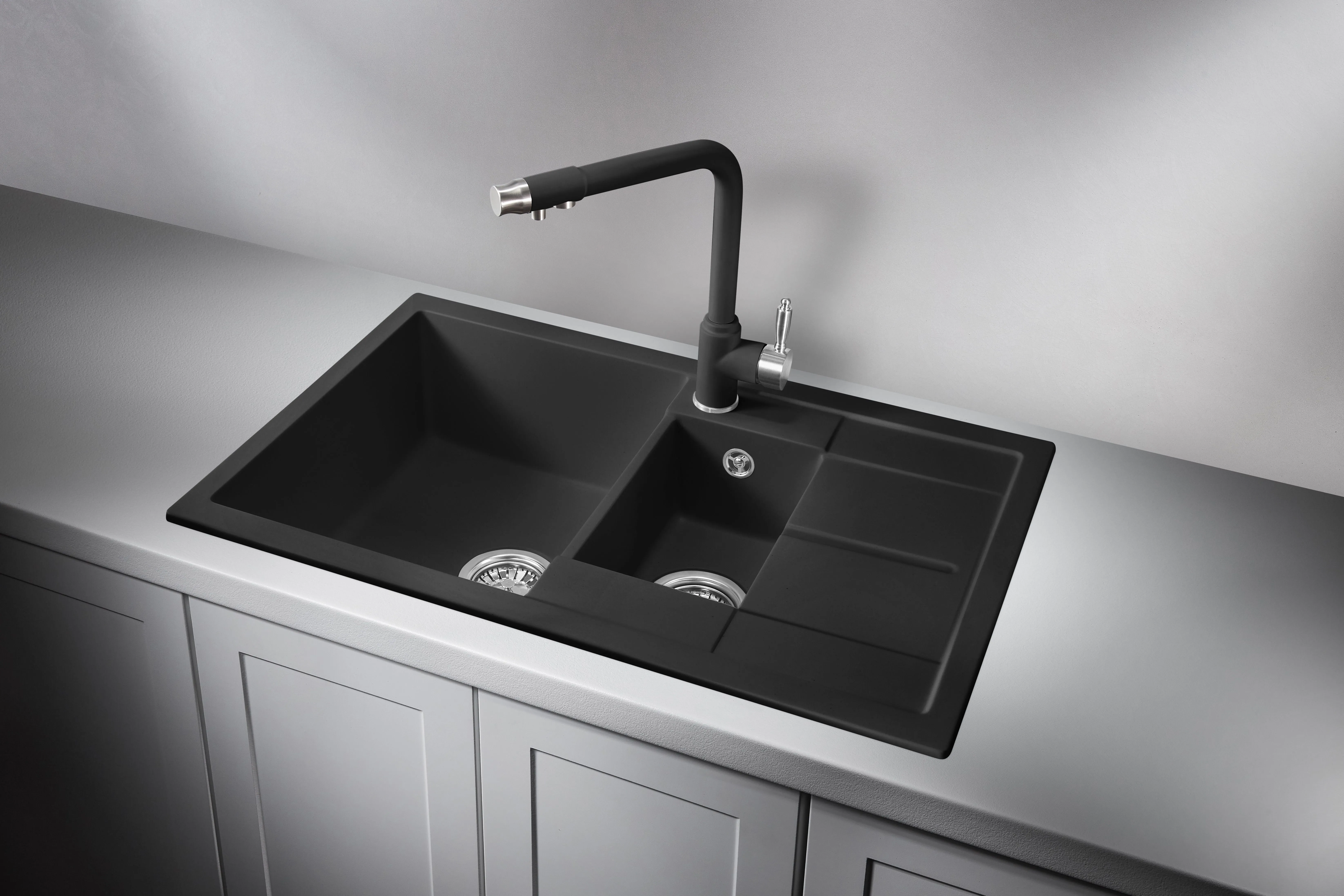 6503, ГРАФИТ (ЧЁРНО-СЕРЫЙ), кухонная мойка, кварц