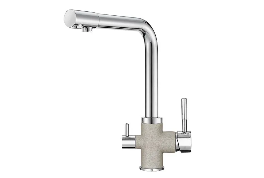 Смеситель для кухонной мойки Granula 3015 изготовлен из высококачественного материала. Латунный корпус обеспечивает длительный срок службы. При этом высокий излив позволяет мыть как мелкую, так и крупногабаритную посуду. Двухрычажная модель смесителя Granula 3015 выполнена с краном для питьевой воды. Фильтрованная вода подается по отдельной трубке и не смешивается с водопроводной водой. Покупателям предлагаются различные типы смесителей, окрашенные в тон моек Granula и StandART.Все модели смесителей для кухонных моек во всех цветах Вы можете посмотреть и приобрести на нашем сайте или в наших представительствах в регионах.Если у Вас остались вопросы, обращайтесь к нашим консультантам
